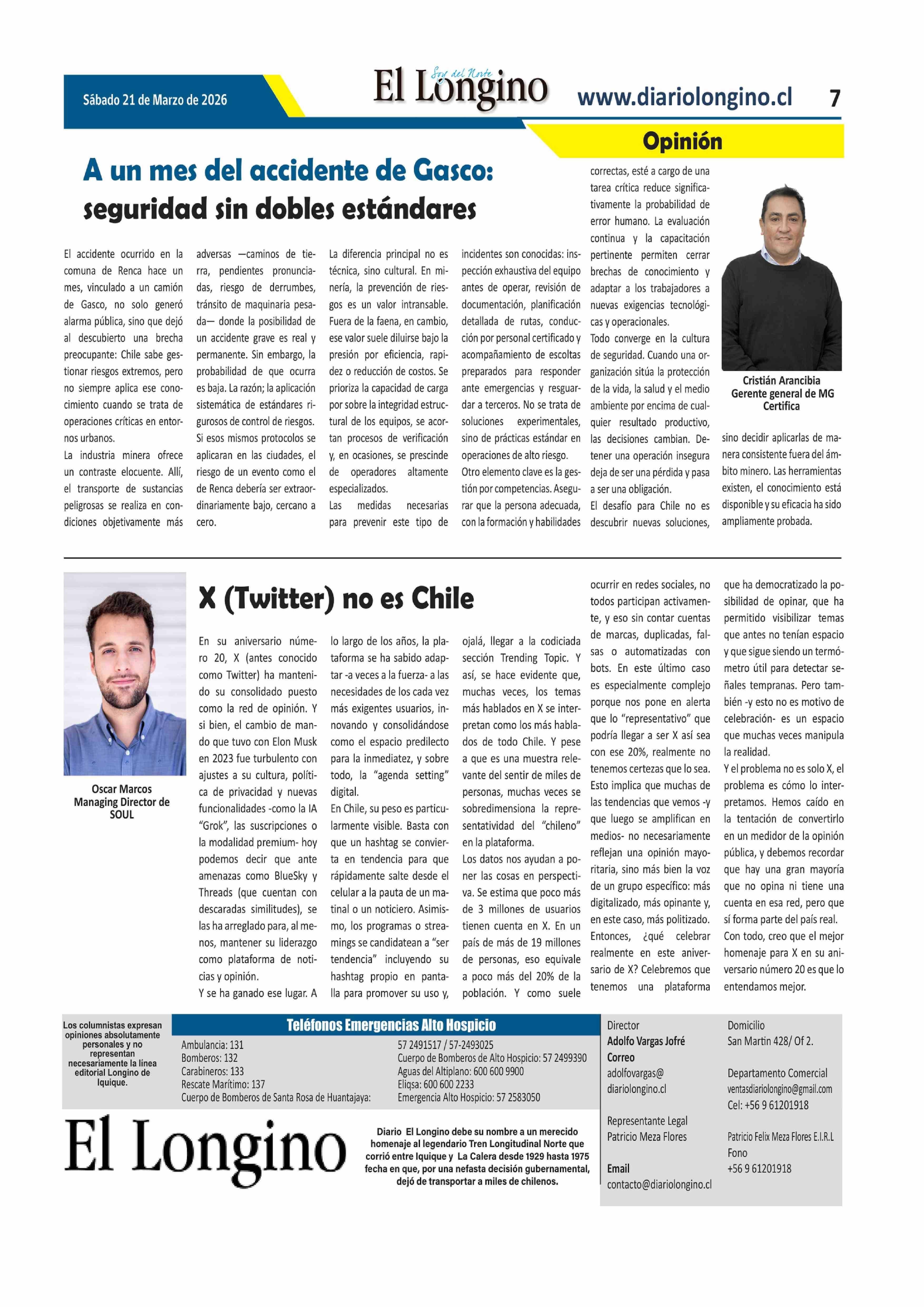 Fecha: 21-03-2026 Sector: Columnas de Opinión Región: Región de Tarapacá