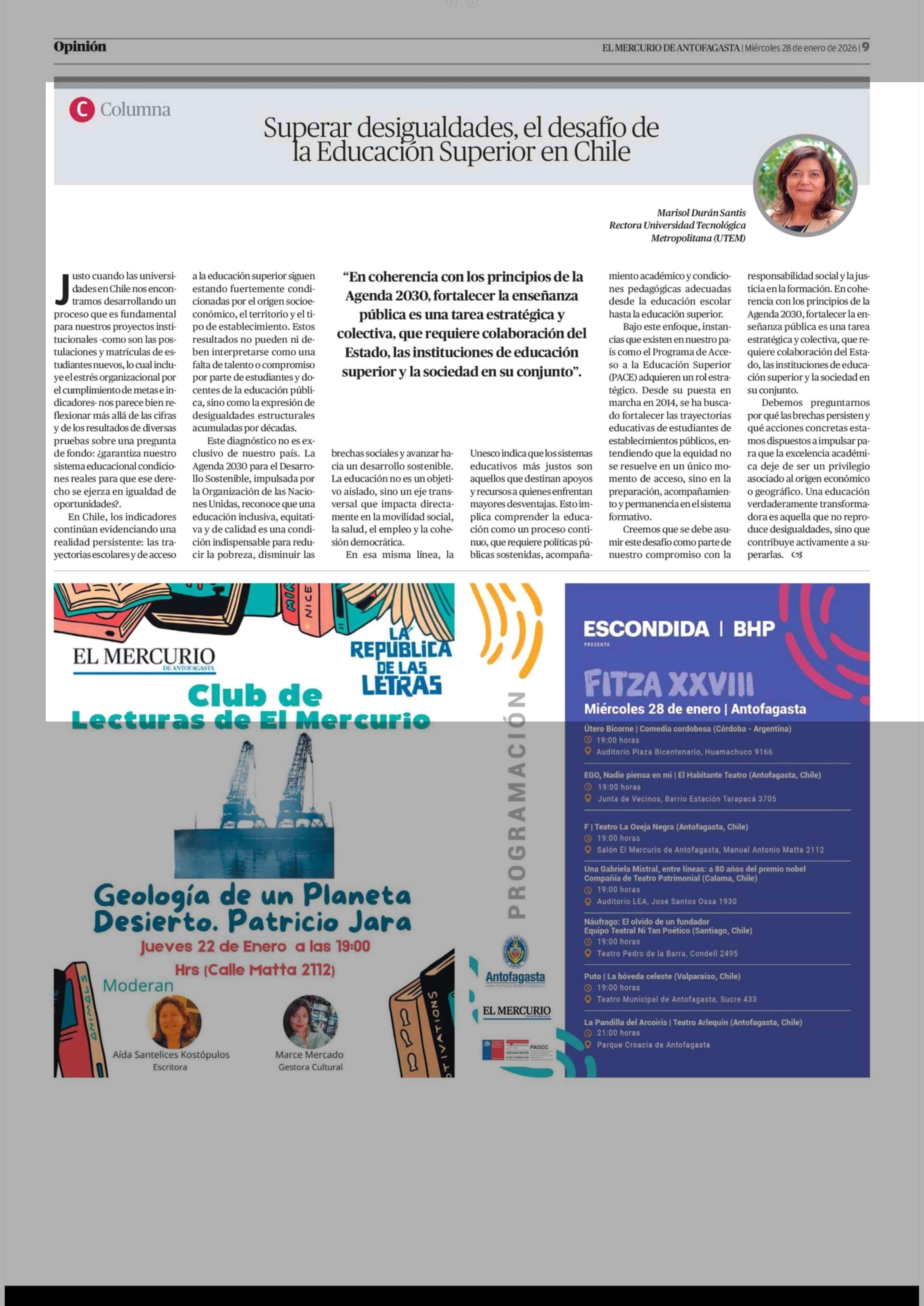 Superar desigualdades, el desafío de a Educación Superior en Chile 28-01-2026 El Mercurio de Antofagasta |