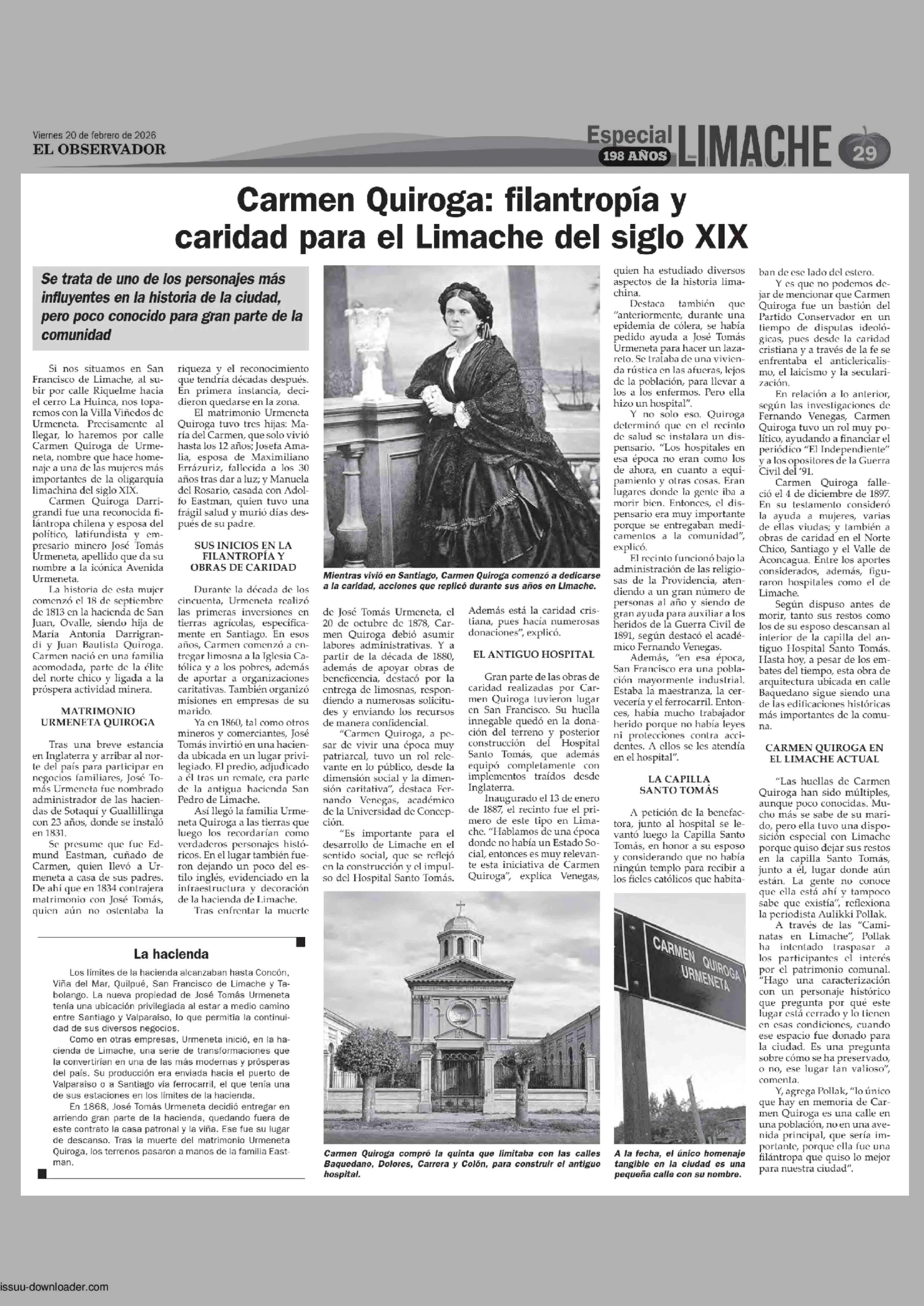 Carmen Quiroga: filantropía y caridad para el Limache del siglo XIX 20-02-2026 El Observador |