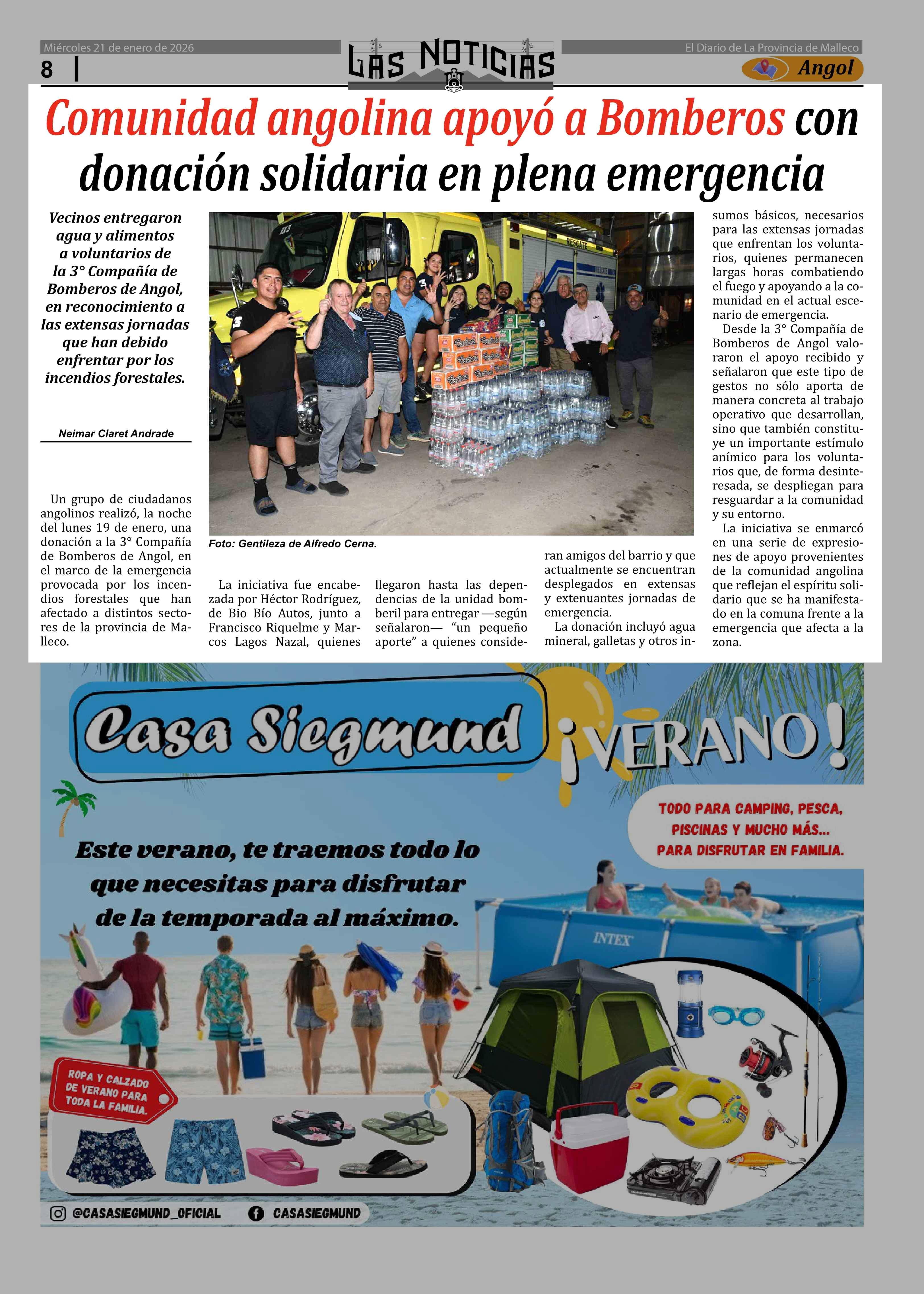 Comunidad angolina apoyó a Bomberos con donación solidaria en plena emergencia 21-01-2026 Las Noticias |