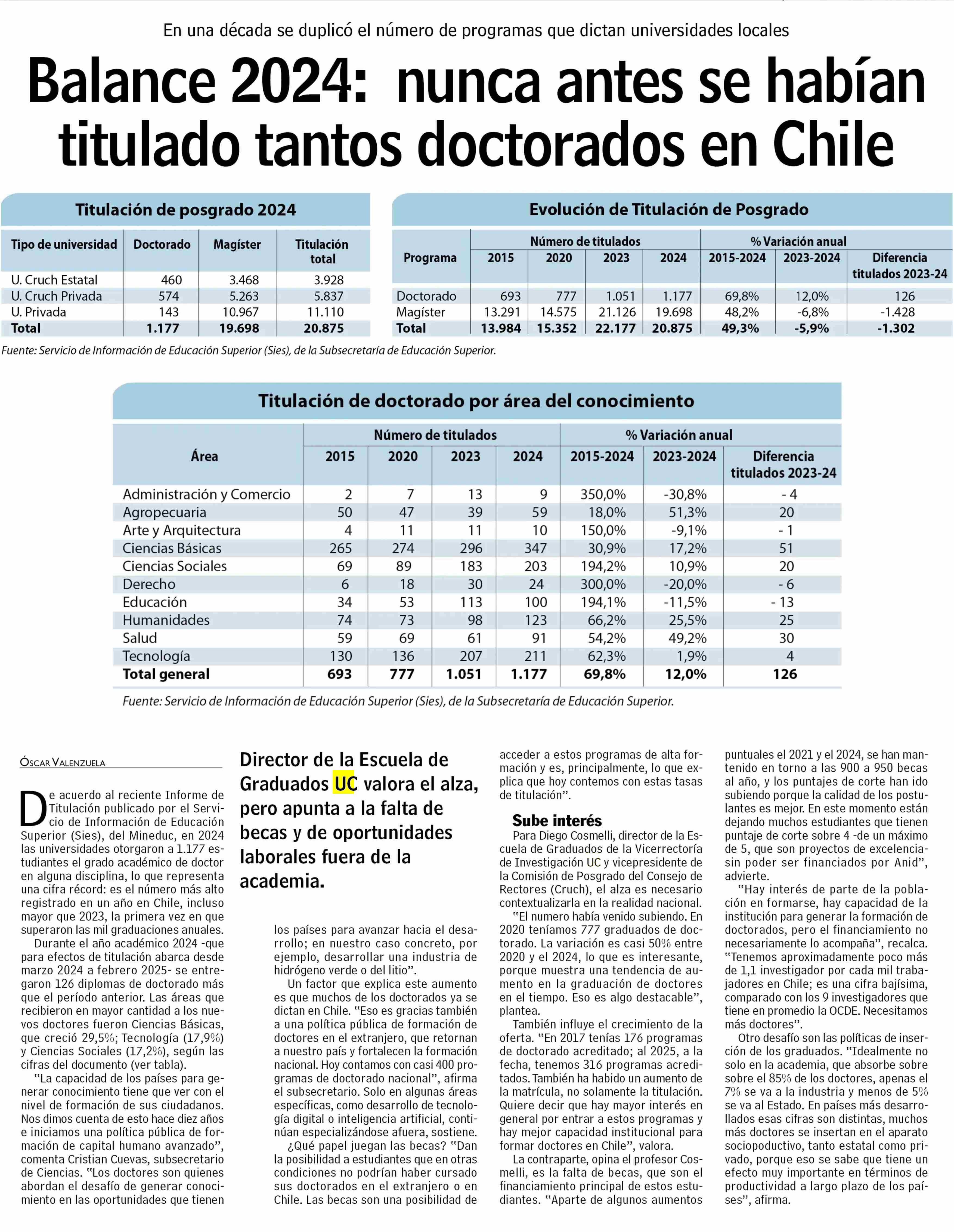 Título: Balance 2024: nunca antes se habian titulado tantos doctorados en Chile