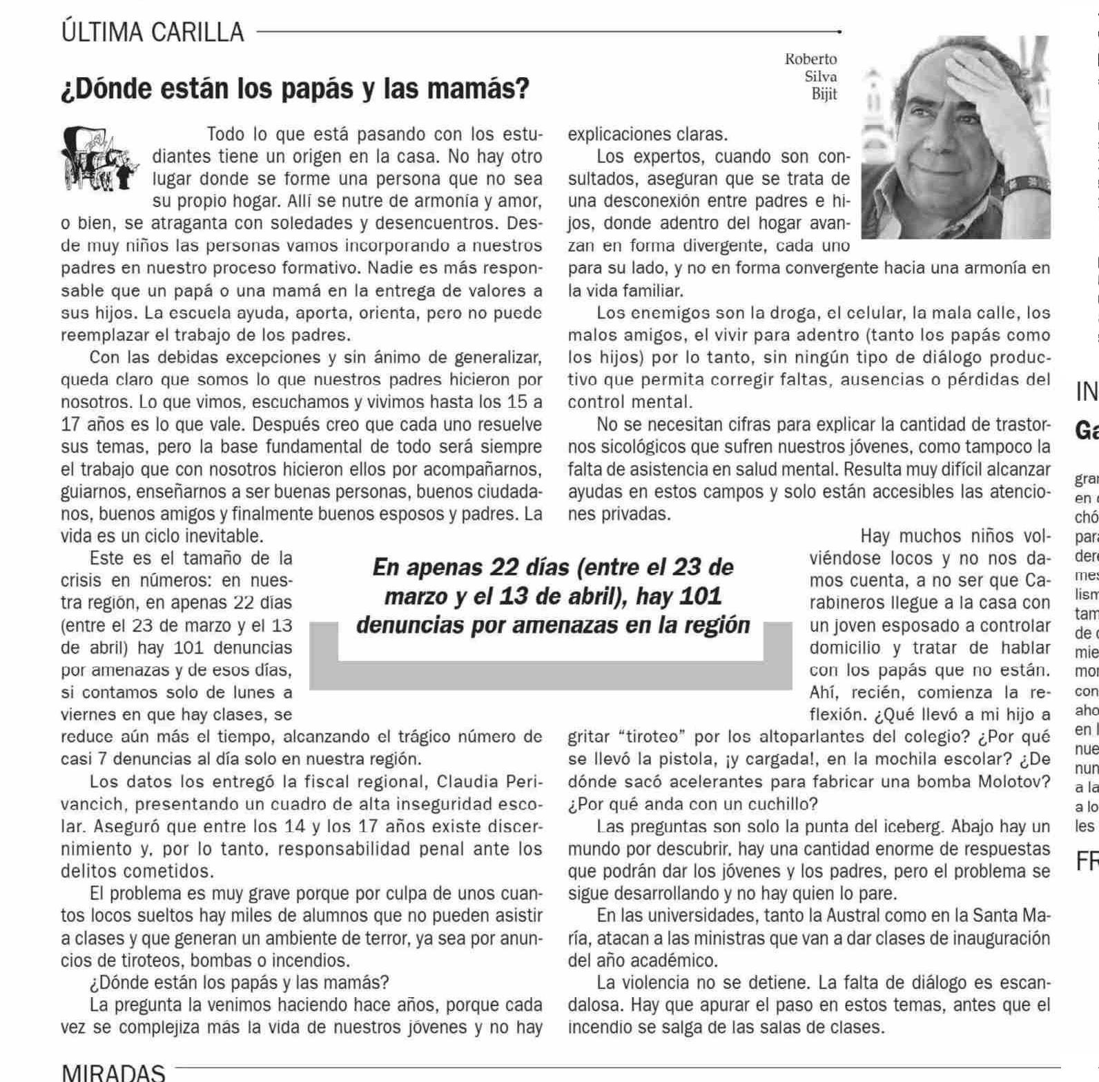 Título: COLUMNAS DE OPINIÓN: ¿Donde están los papás y las mamás?