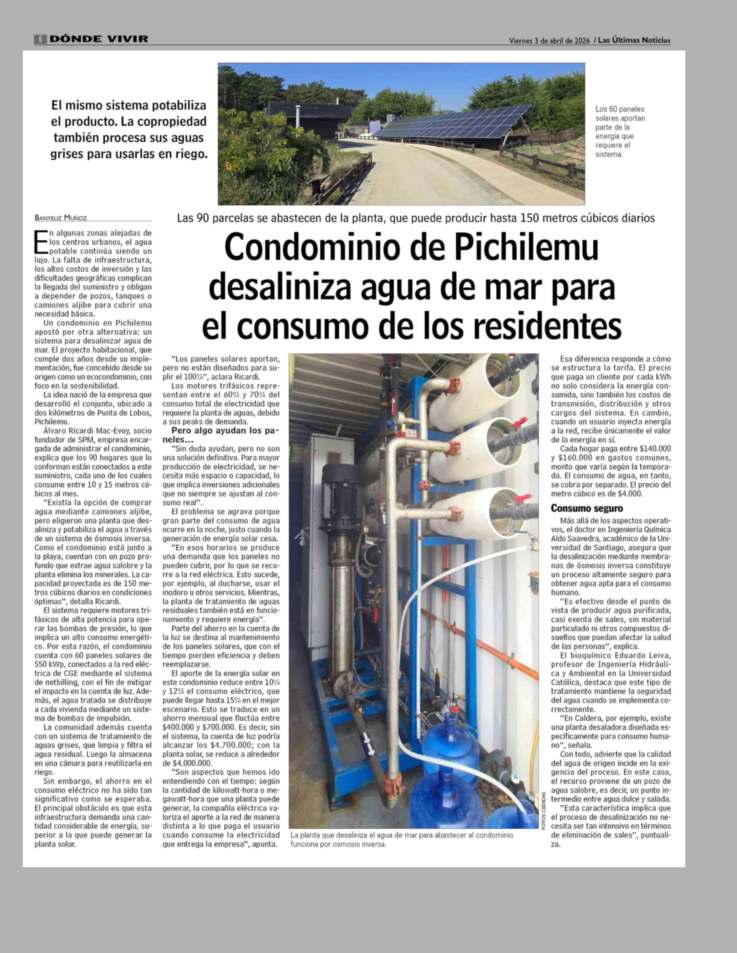 Título: Condominio de Pichilemu desaliniza agua de mar para el consumo de los residentes