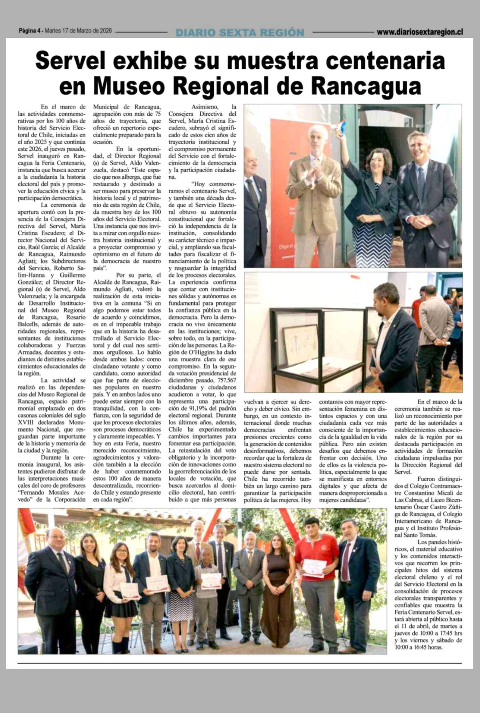 Título: Servel exhibe su muestra centenaria en Museo Regional de Rancagua