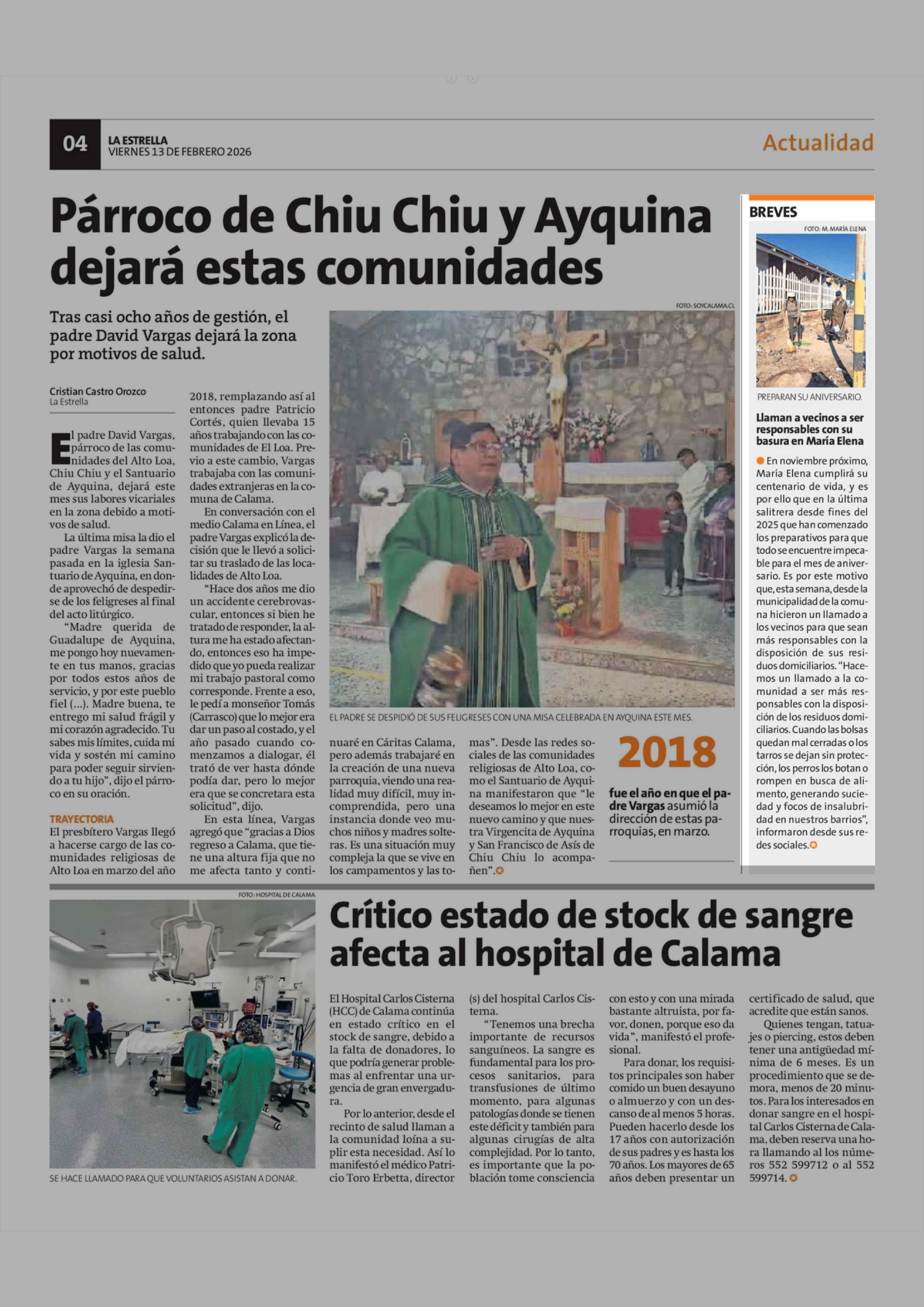 | Fecha: | 13-02-2026 | Sector: | Noticia general | Región: | Región de Antofagasta |