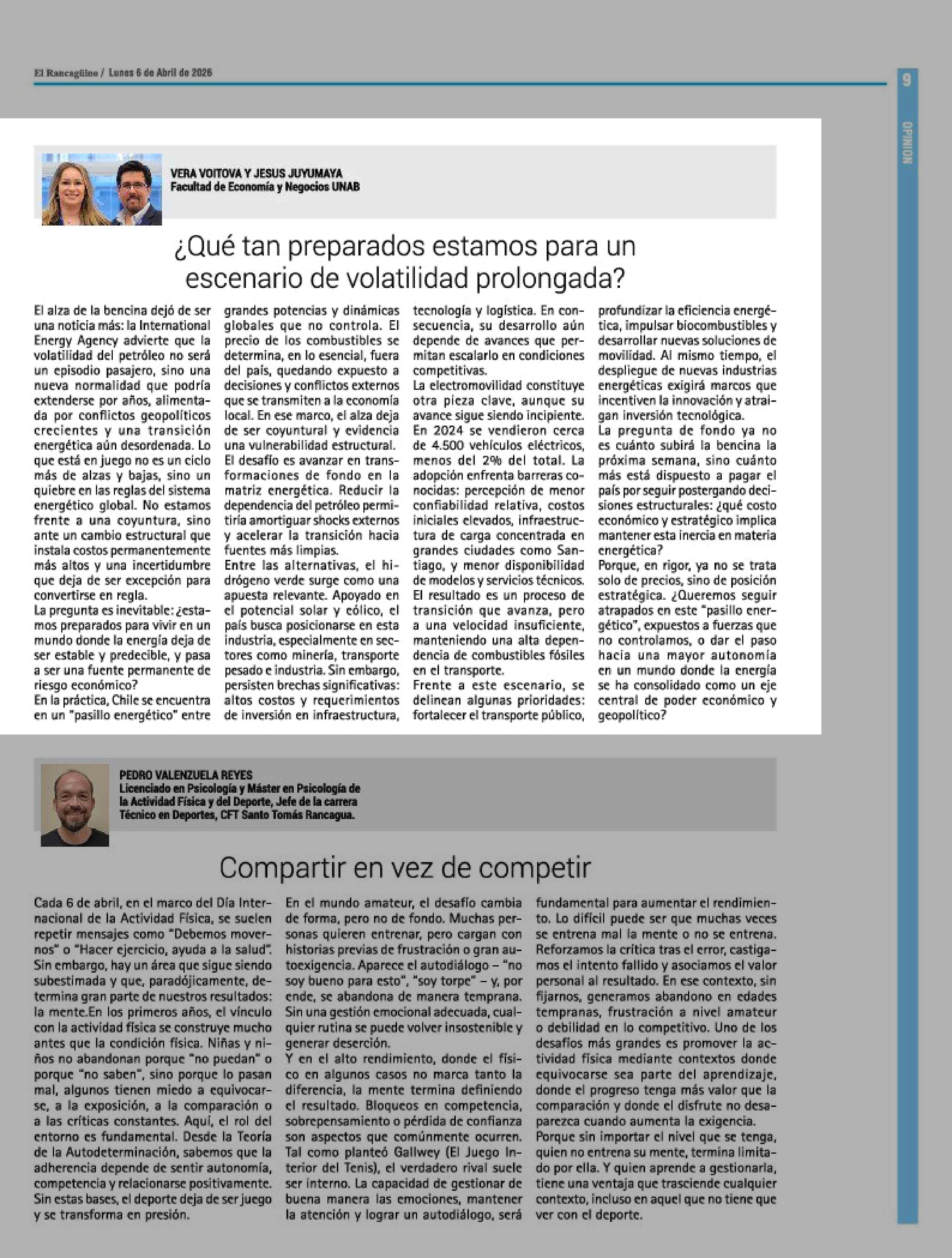 COLUMNAS DE OPINIÓN: ¿Qué tan preparados estamos para un escenario de volatilidad prolongada? 06-04-2026 El Rancagüino |