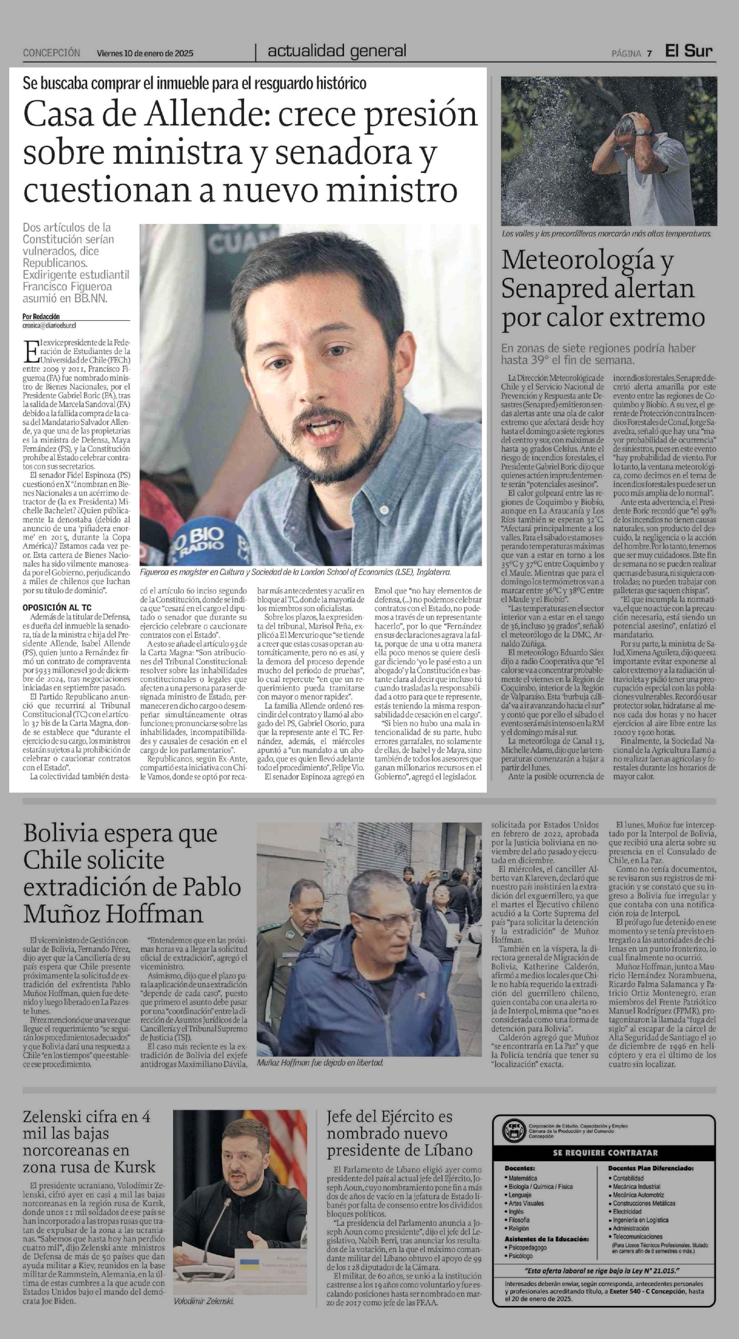 Casa de Allende: crece presión sobre ministra y senadora y cuestionan a nuevo ministro 10-01-2025 El Sur |