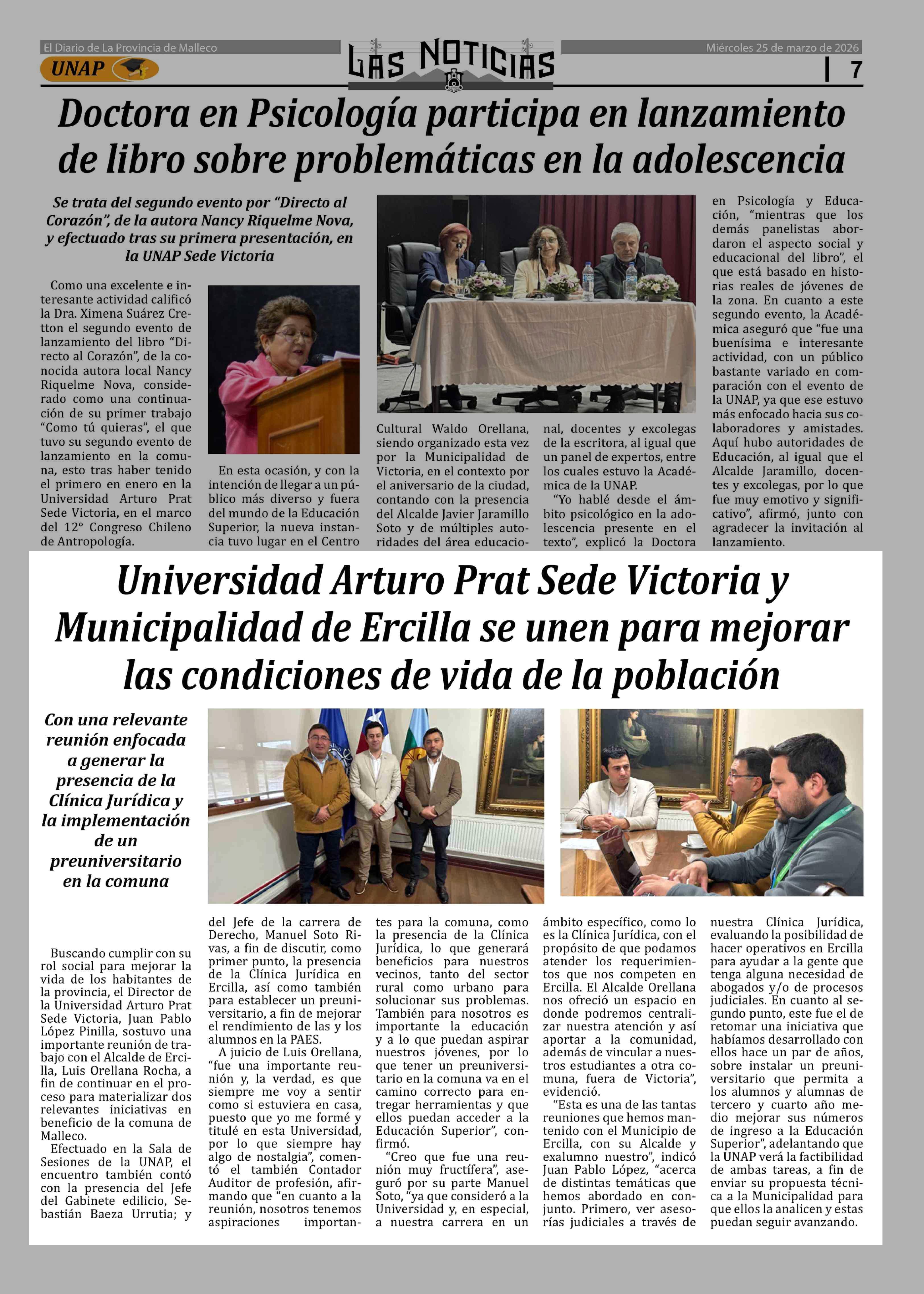 Título: Universidad Arturo Prat Sede Victoria y Municipalidad de Ercilla se unen para mejorar las condiciones de vida de la población