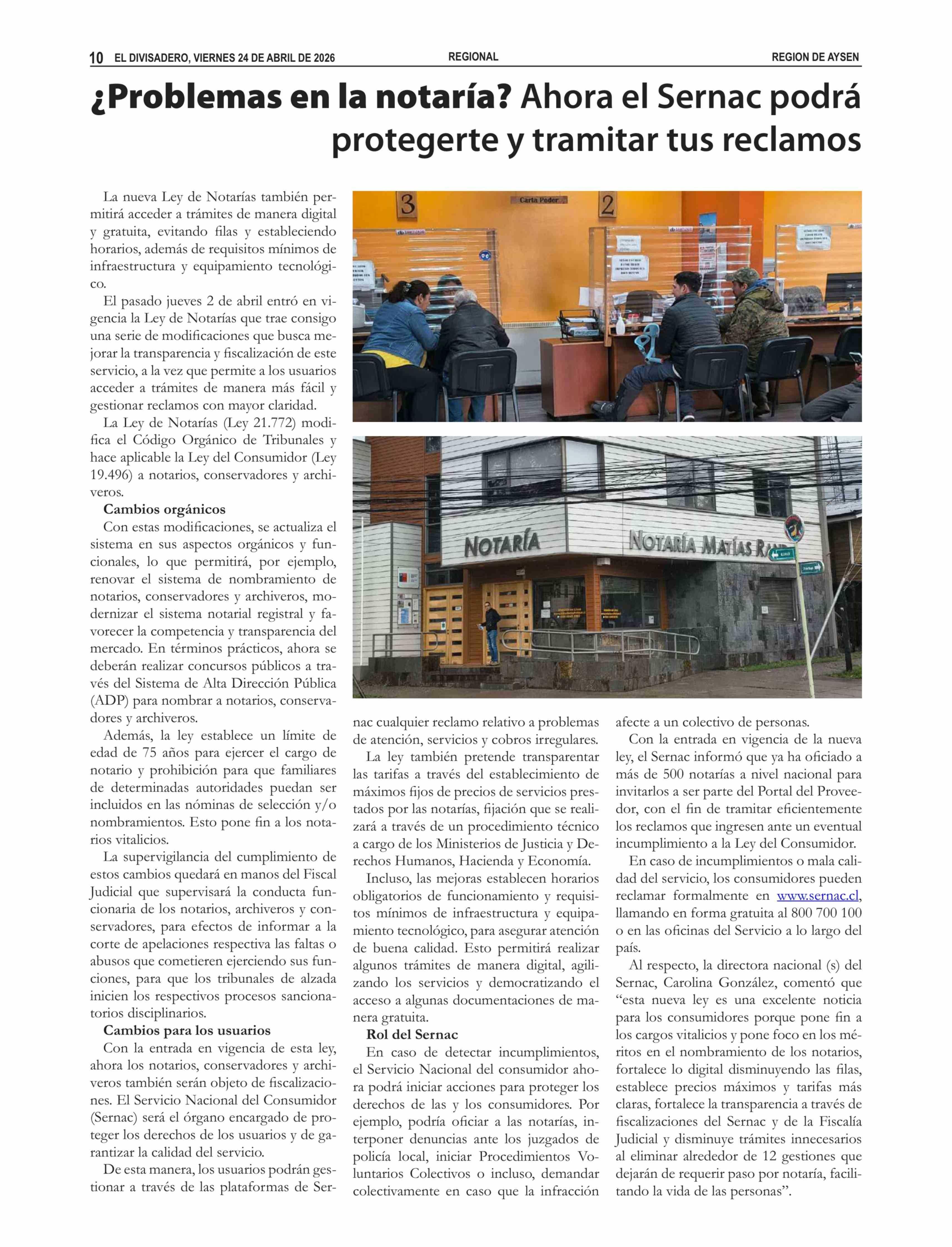 ¿Problemas en la notaría? Ahora el Sernac podrá protegerte y tramitar tus reclamos 24-04-2026 El Divisadero |