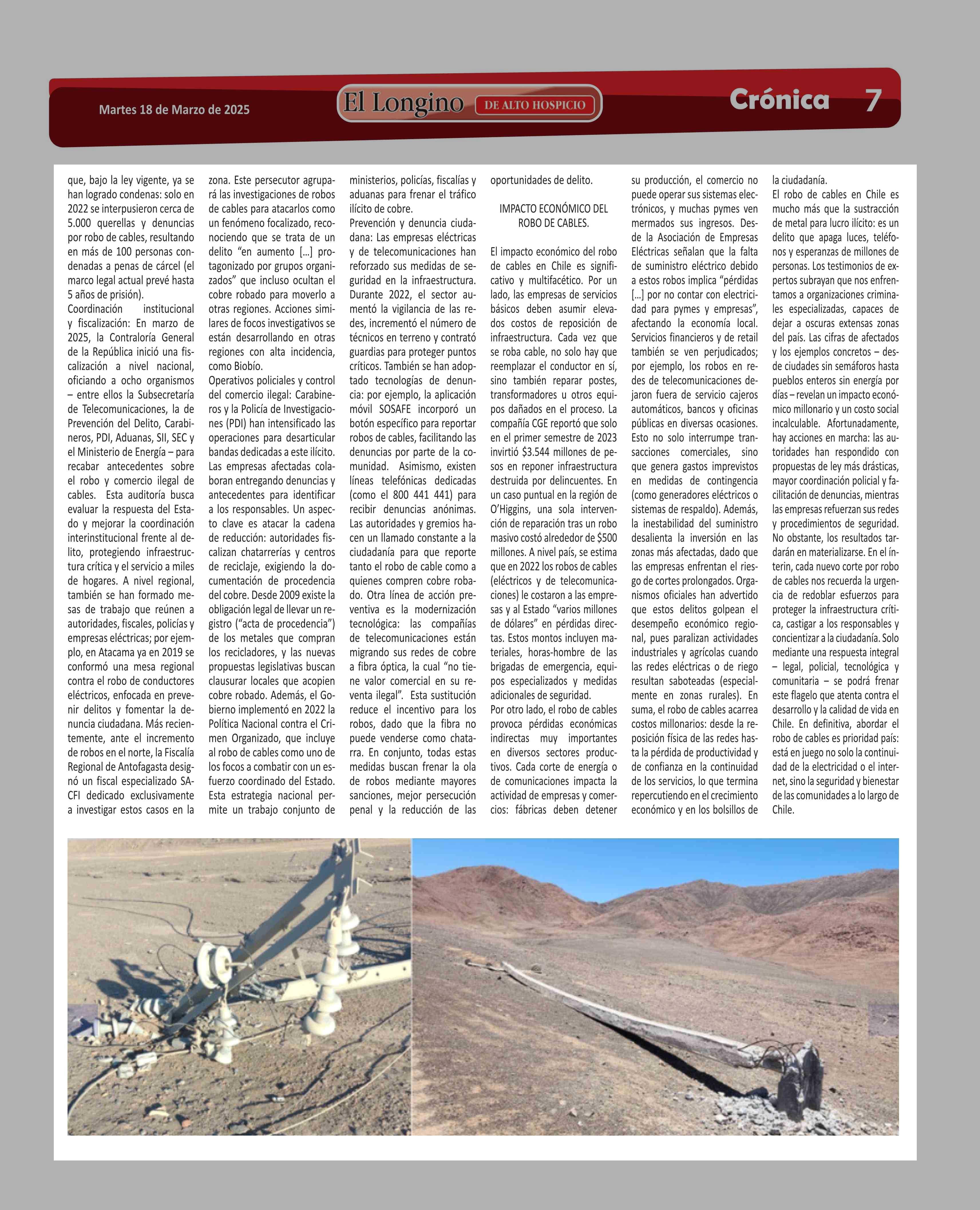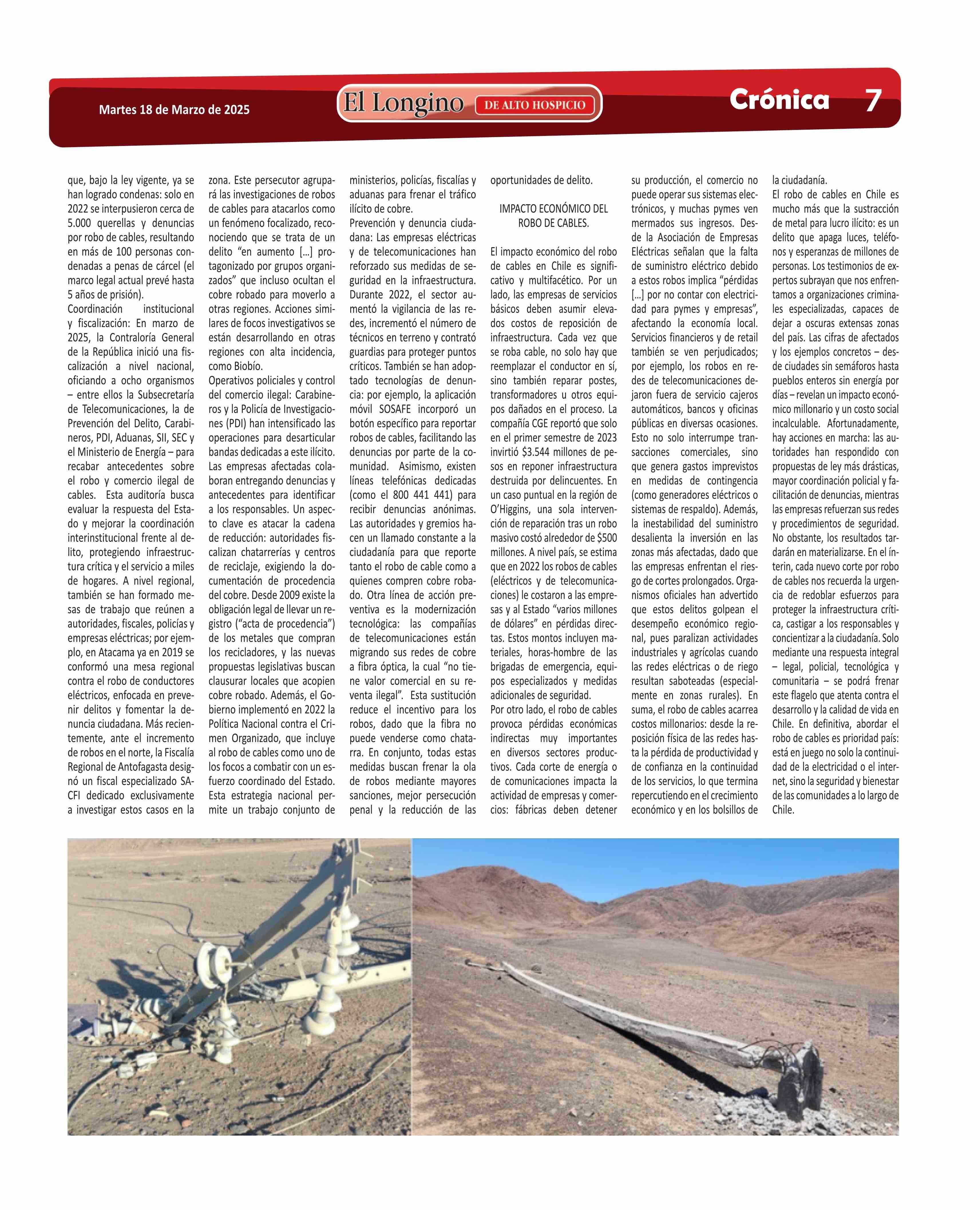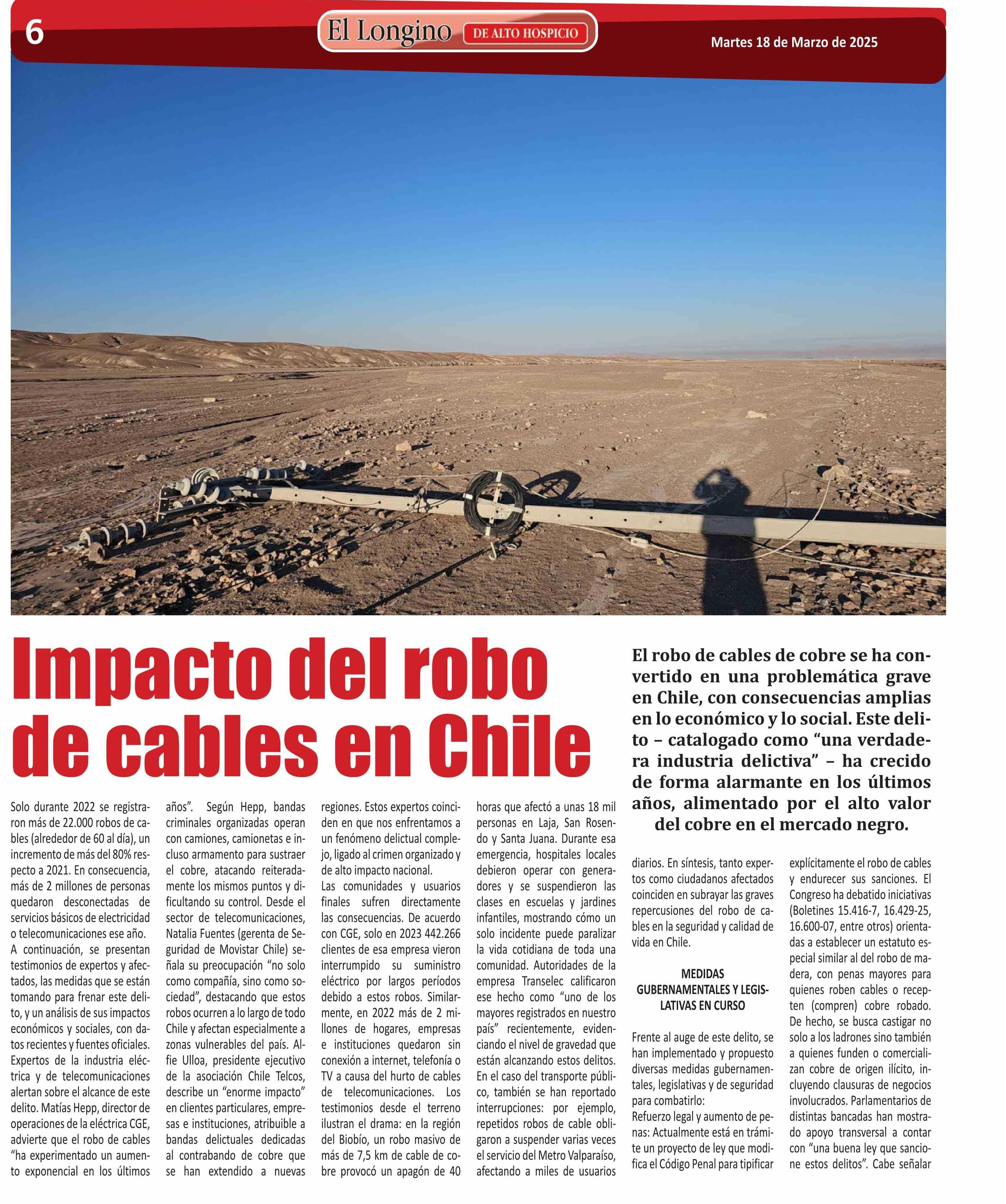 Impacto del robo de cables en Chile 18-03-2025 El Longino |