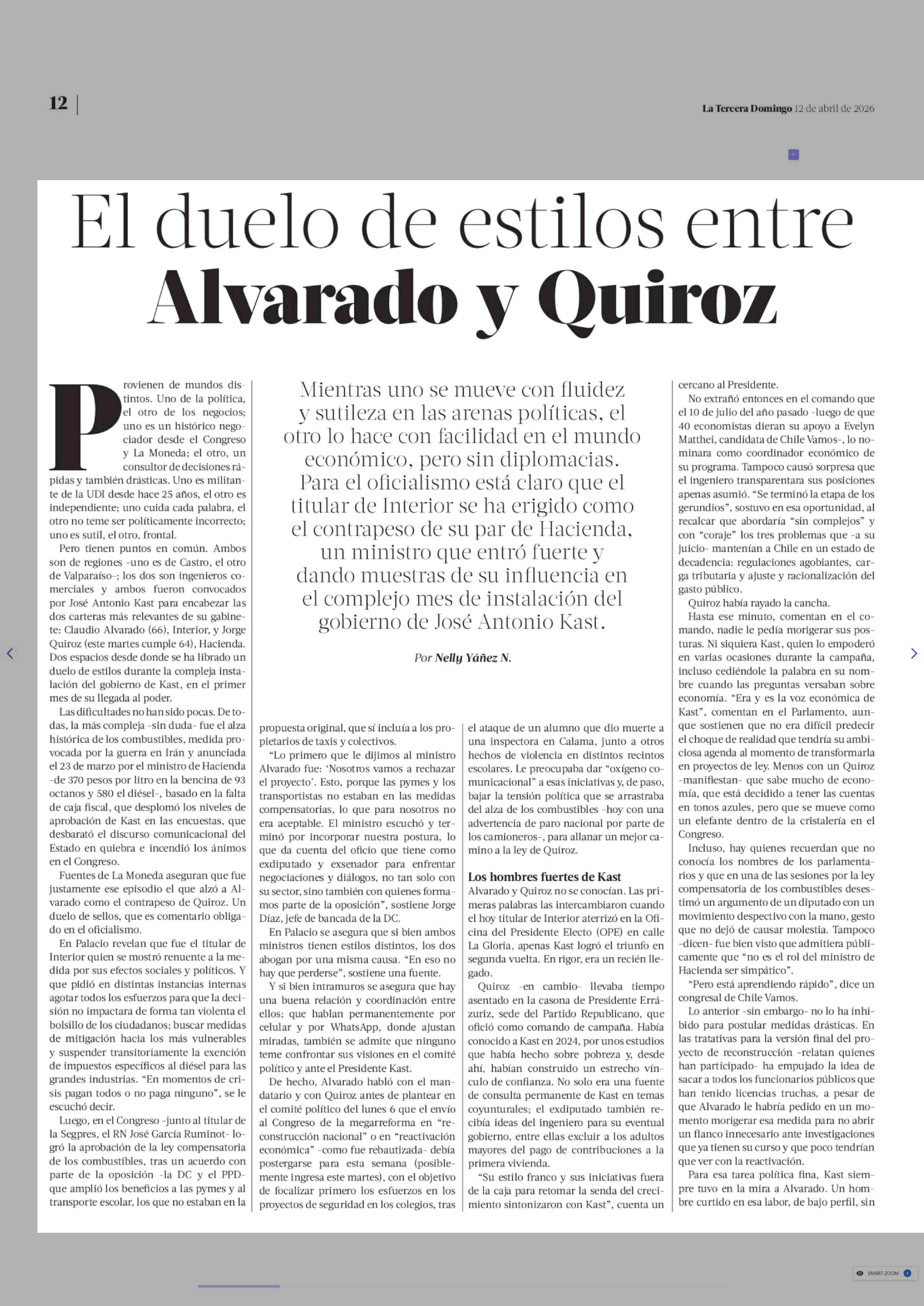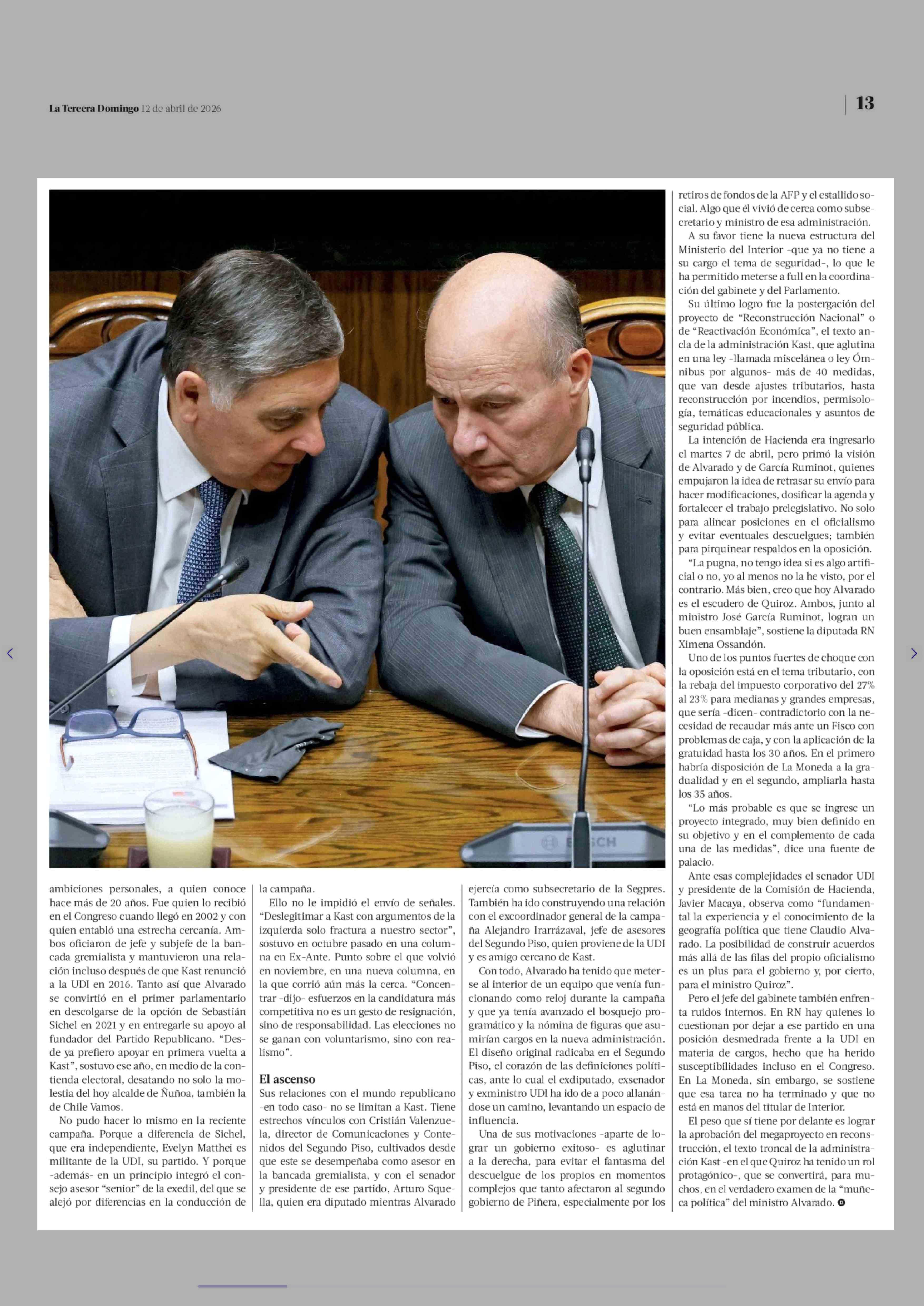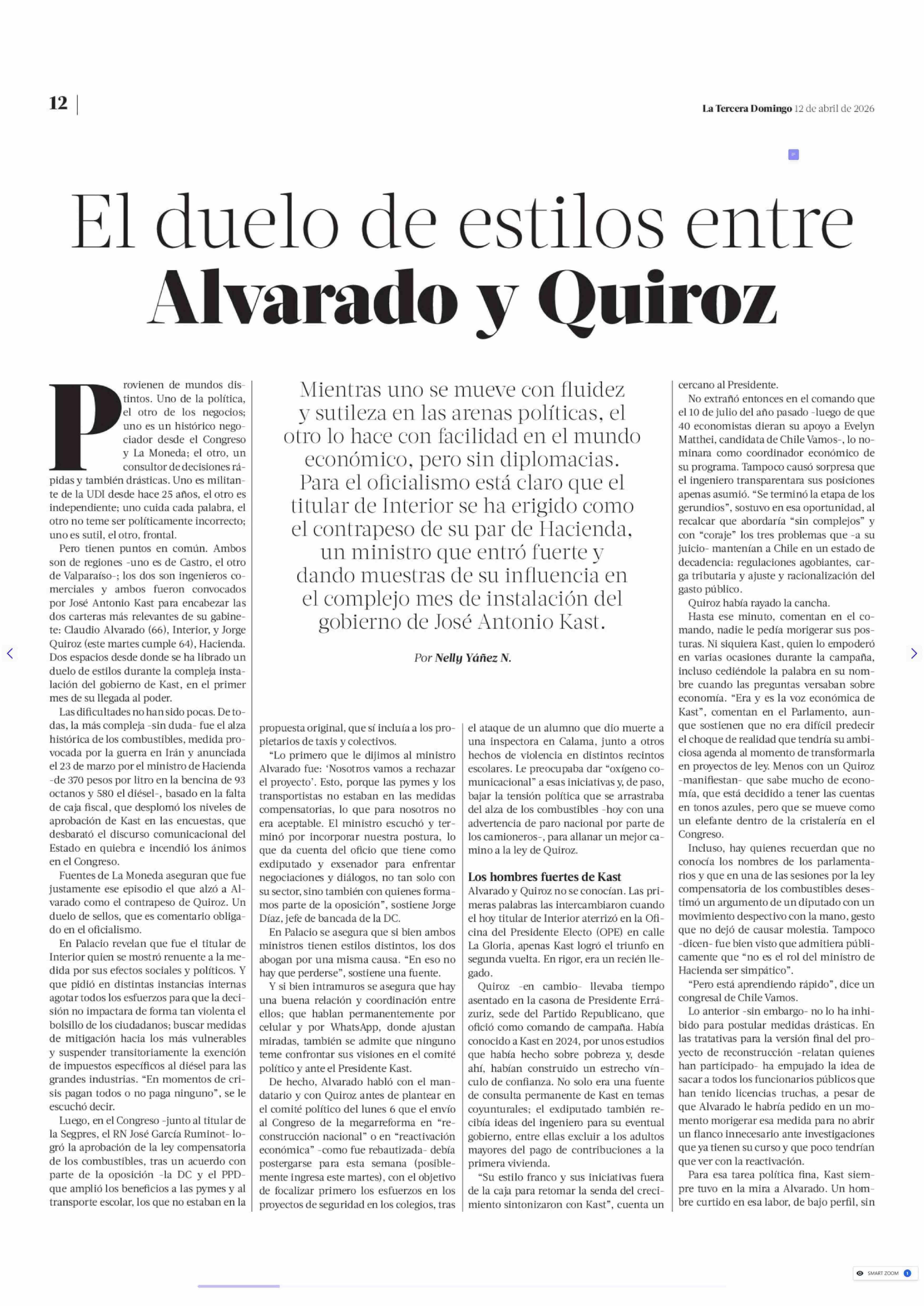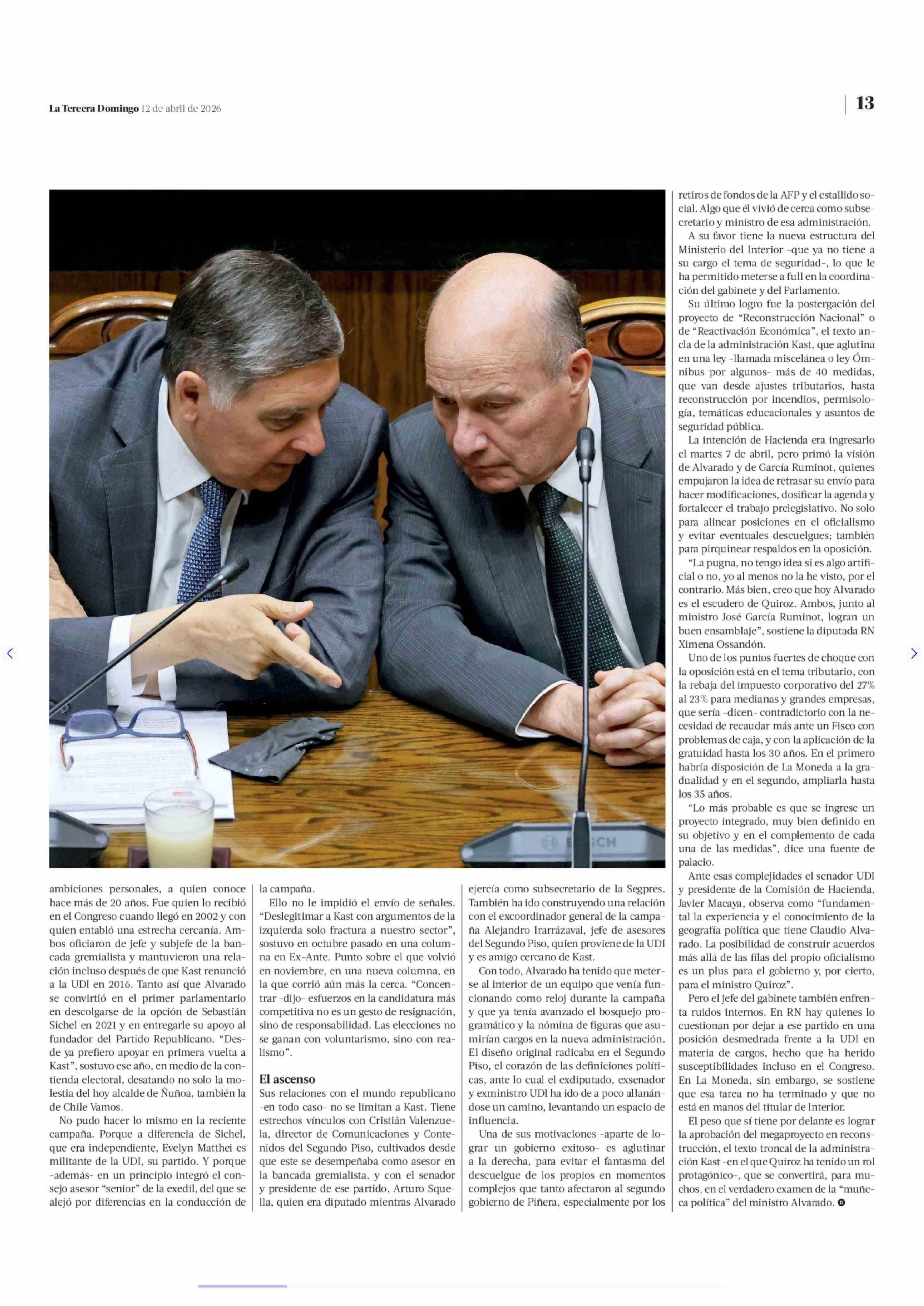 El duelo de estilos entre Alvarado y Quiroz 12-04-2026 La Tercera |