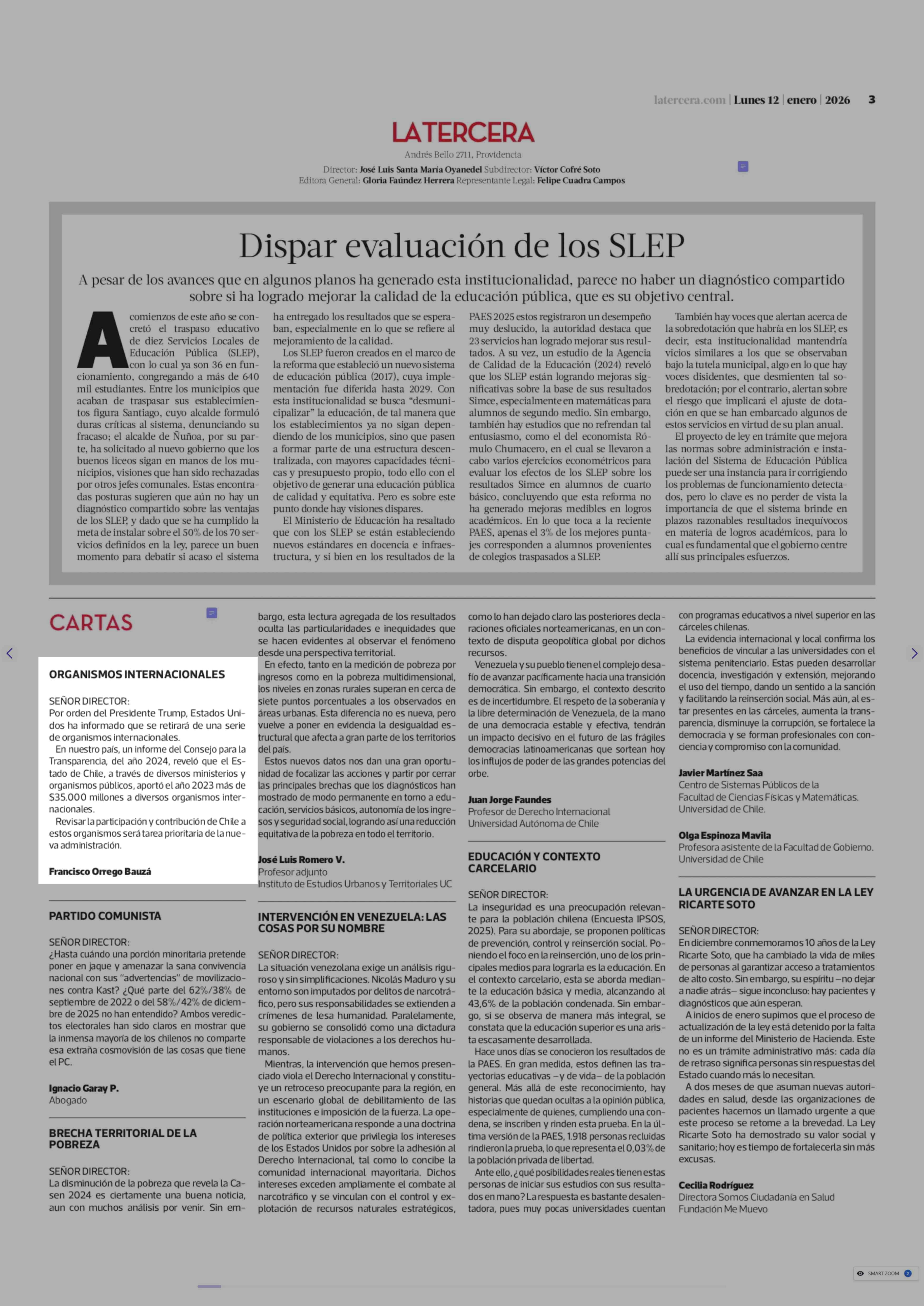 Cartas: ORGANISMOS INTERNACIONALES 12-01-2026 La Tercera |