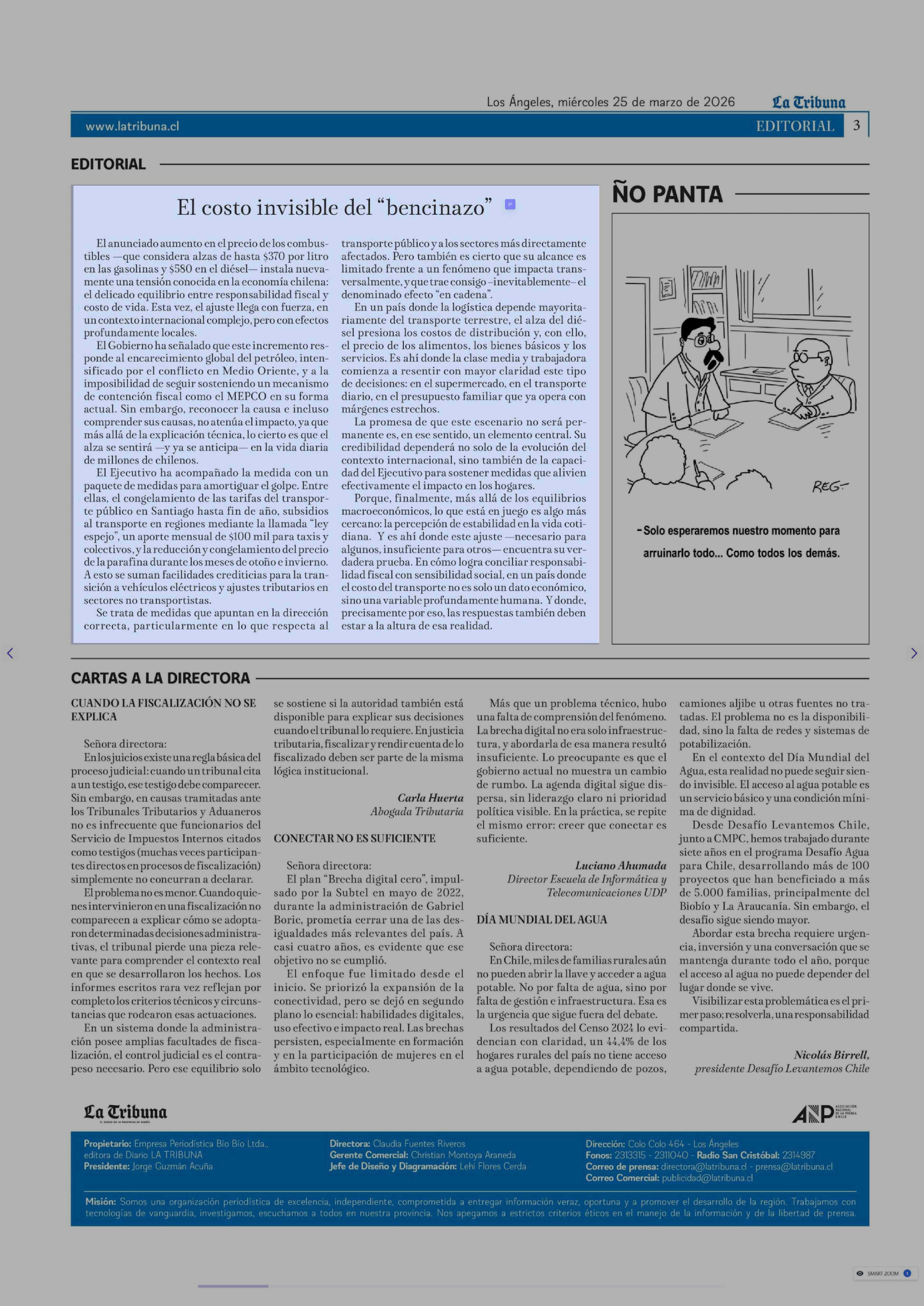 Editorial: El costo invisible del "bencinazo" 25-03-2026 La Tribuna |