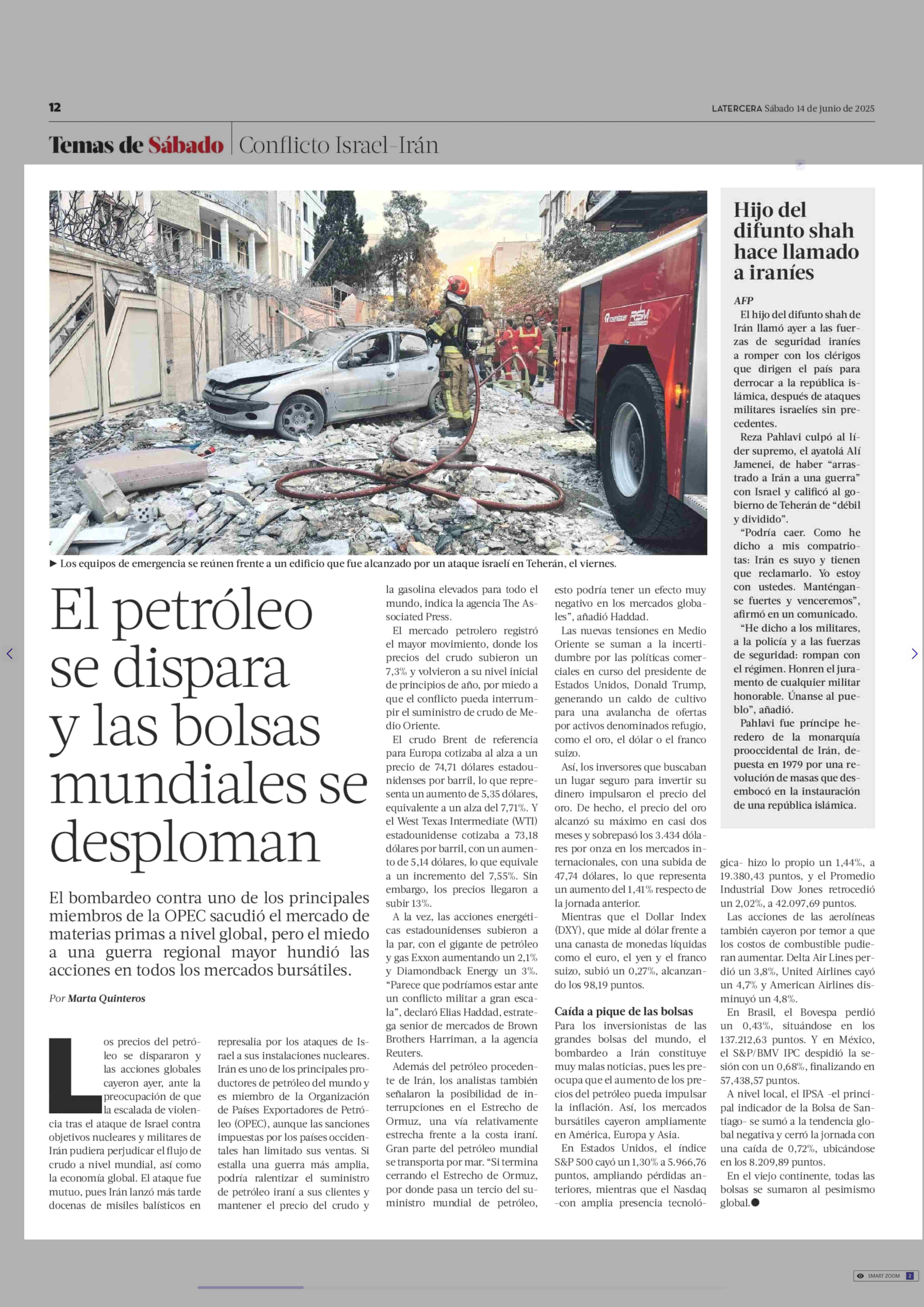El petróleo se dispara y las bolsas mundiales se desploman 14-06-2025 La Tercera |