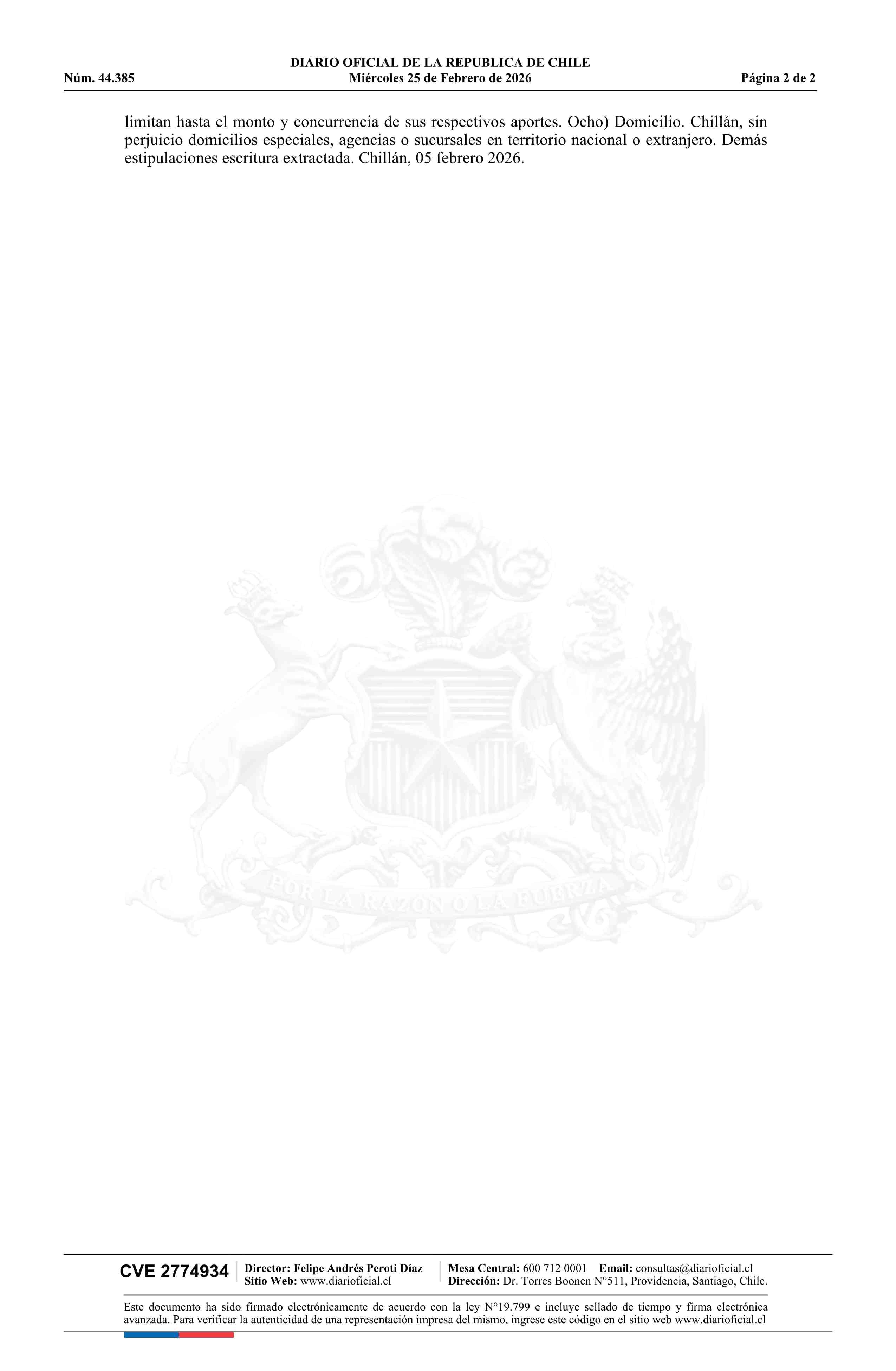 ARIDOS REMFISC LIMITADA 76.145.730-6 25-02-2026 Diario Oficial Edición Electrónica |