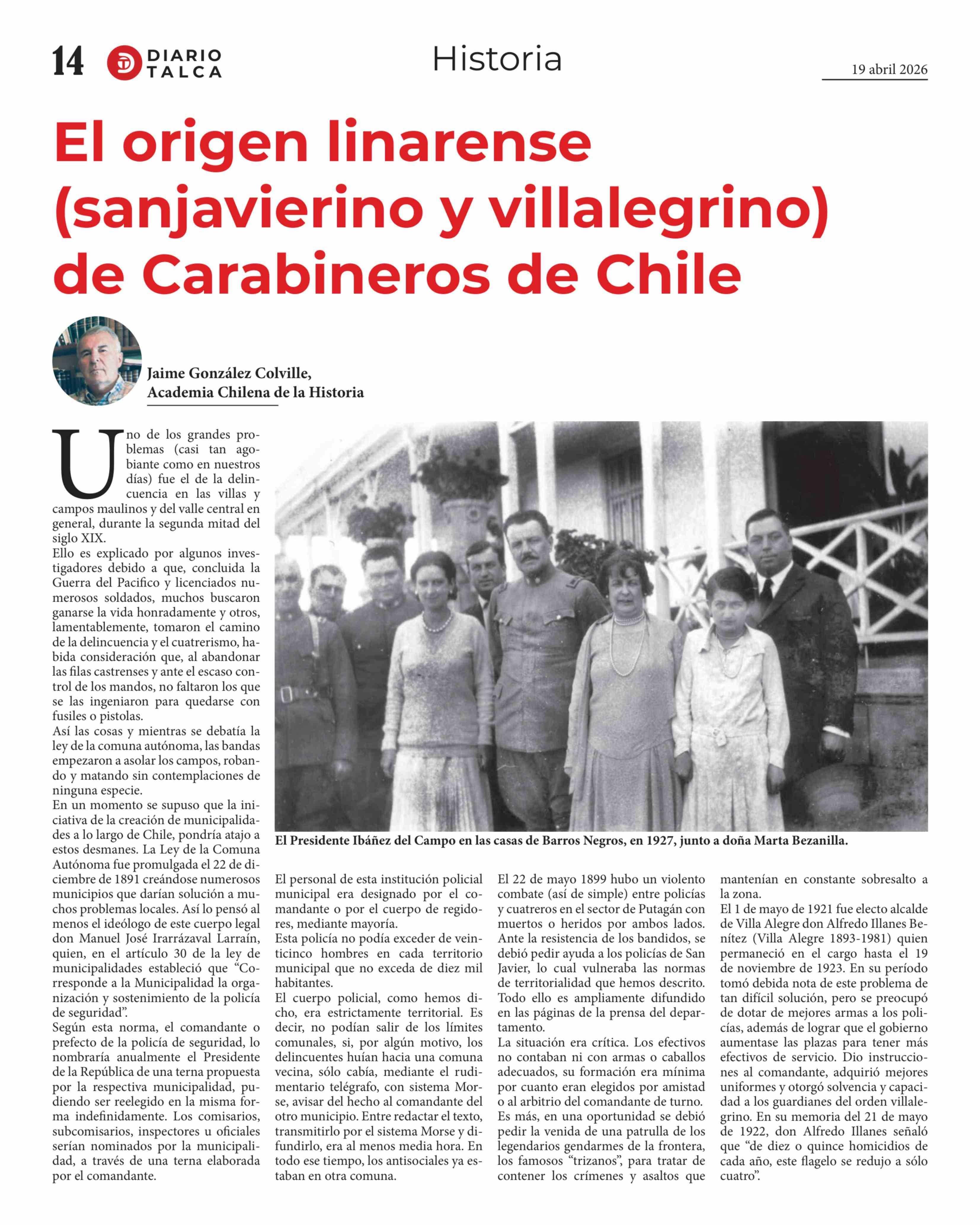 El origen linarense (sanjavierino y villalegrino) de Carabineros de Chile