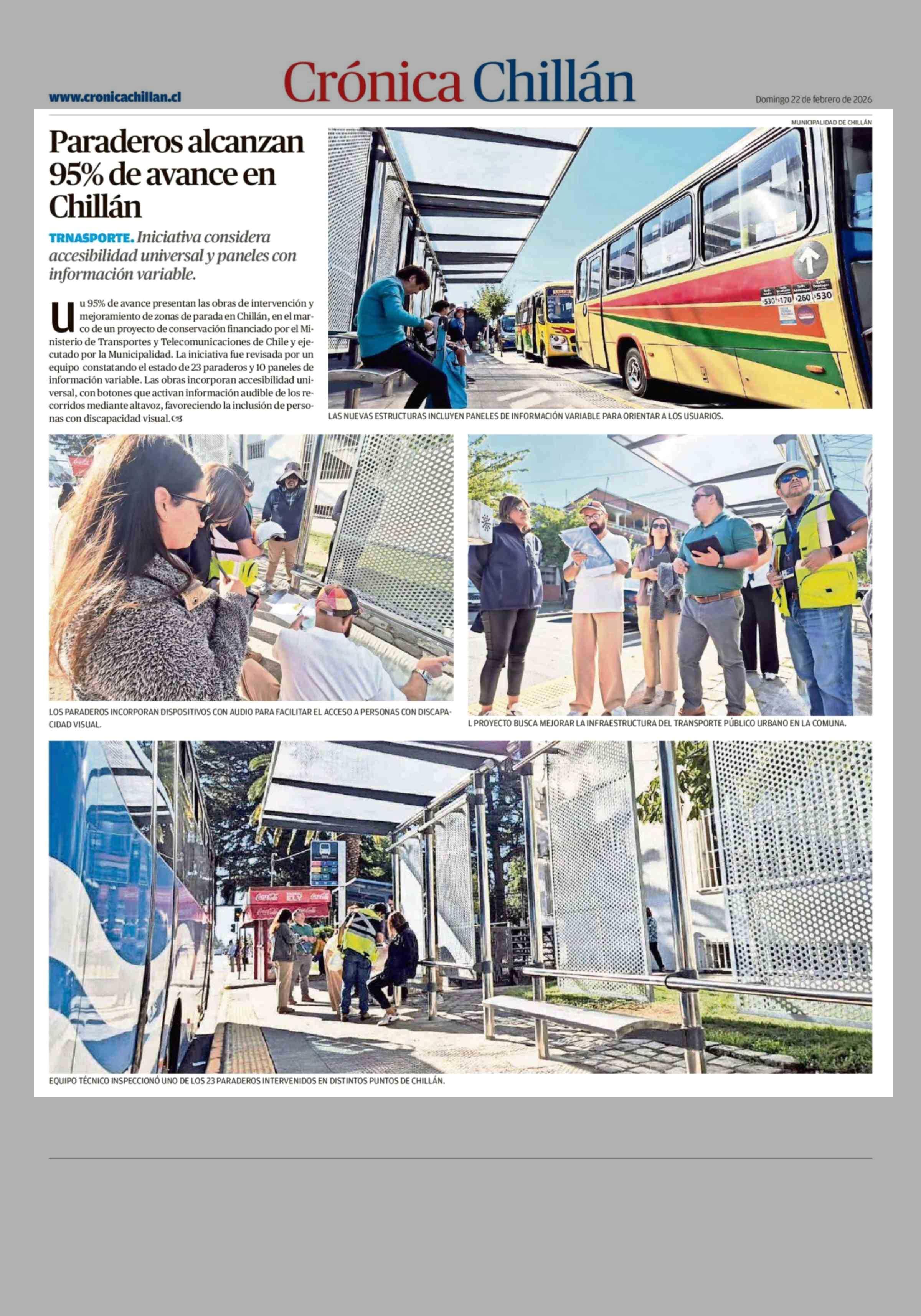 Paraderos alcanzan 95% de avance en Chillán 22-02-2026 Crónica de Chillán |