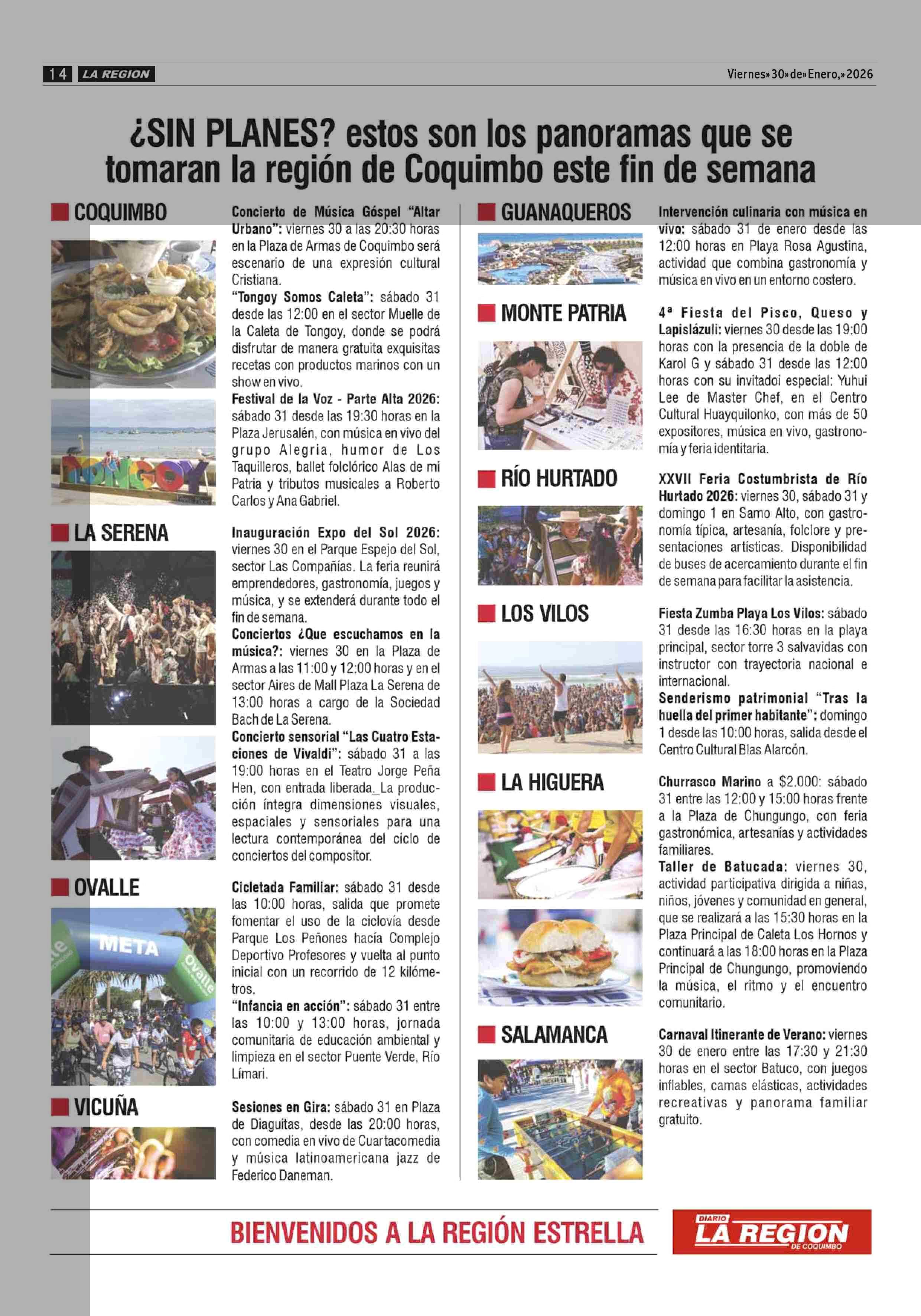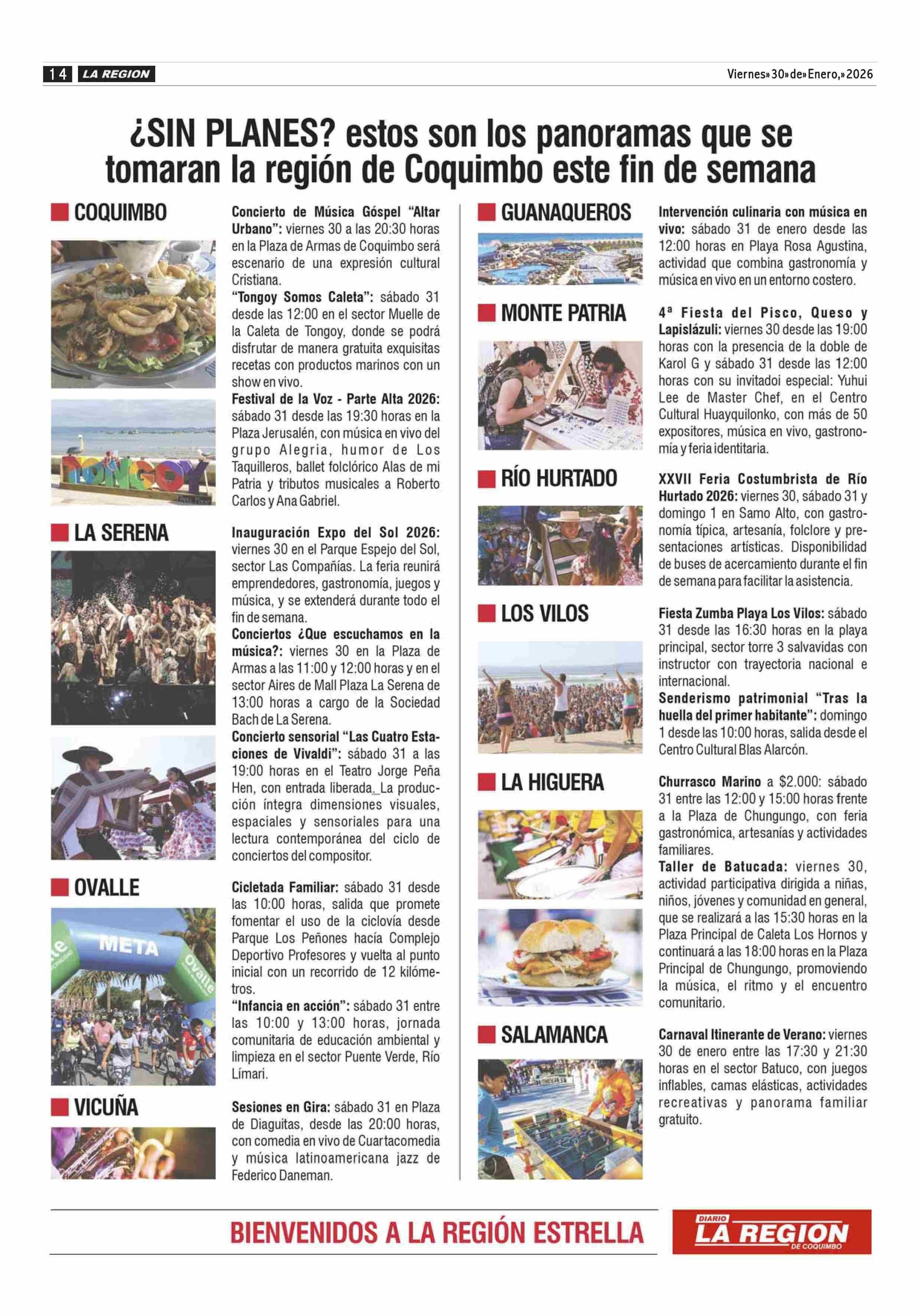 ¿SIN PLANES? estos son los panoramas que se tomaran la región de Coquimbo este fin de semana 30-01-2026 Diario la Región |