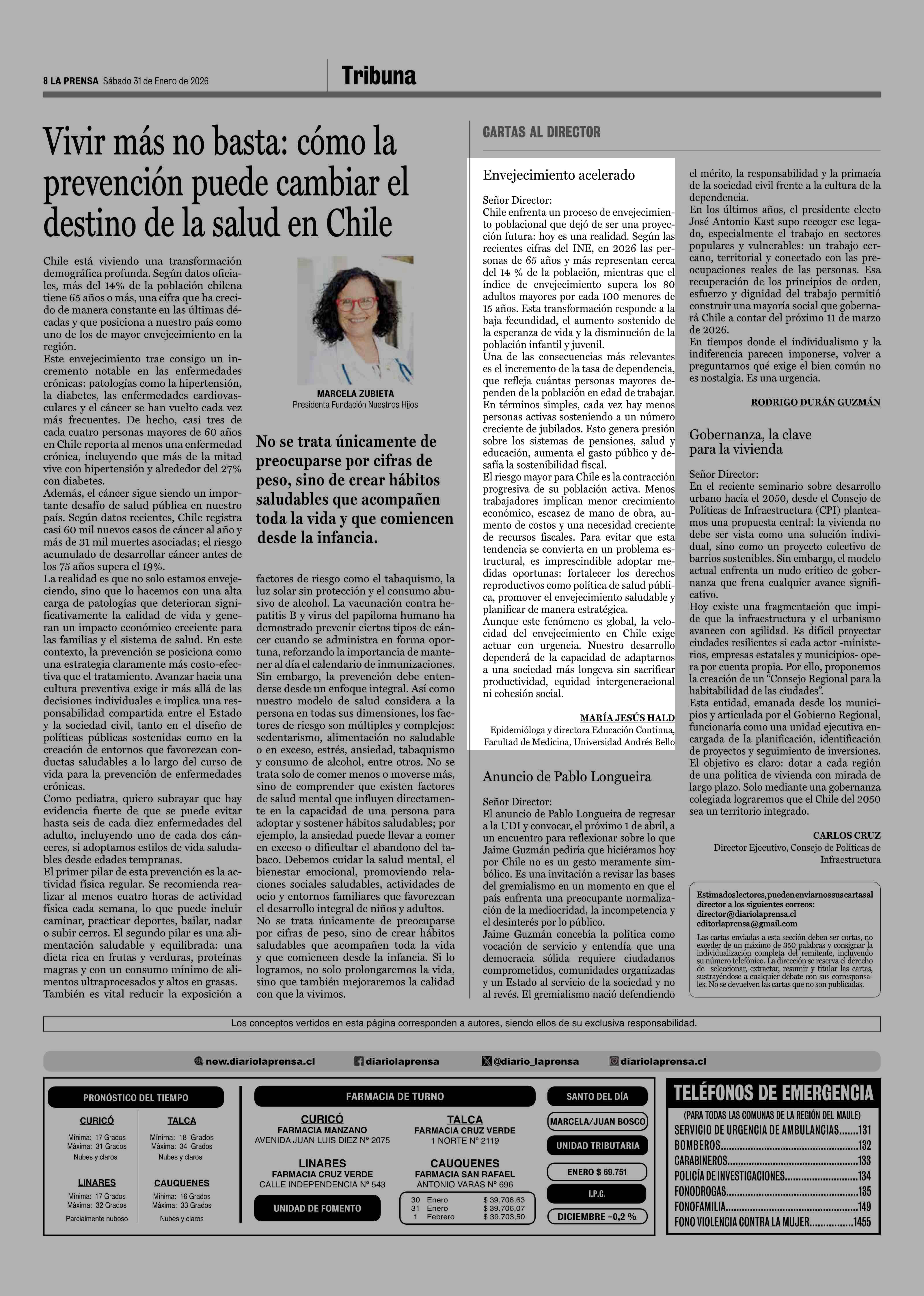 CARTAS: Envejecimiento acelerado 31-01-2026 La Prensa de Curicó |