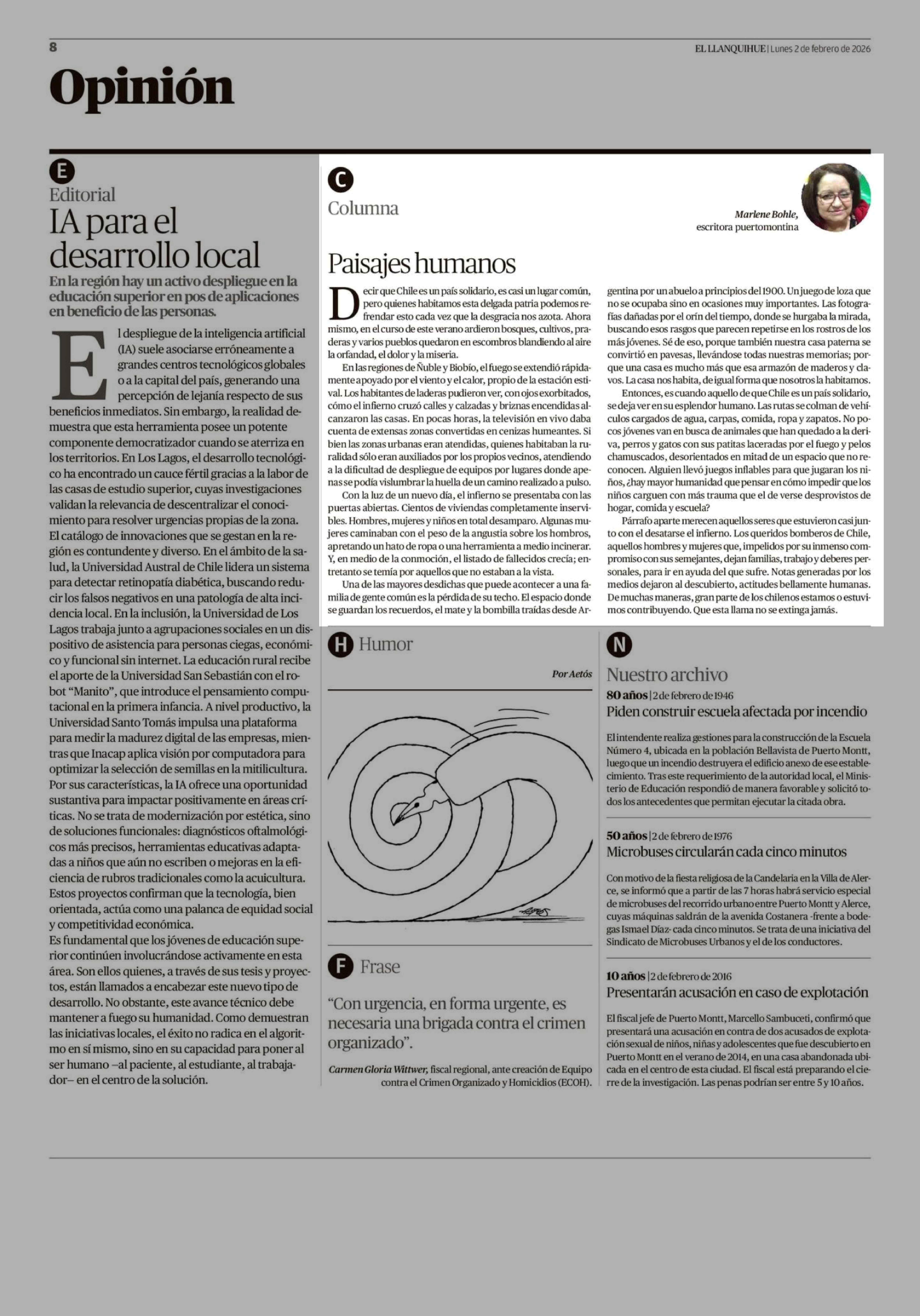 Fecha: 02-02-2026 Sector: Columnas de Opinión Región: Región de Los Lagos