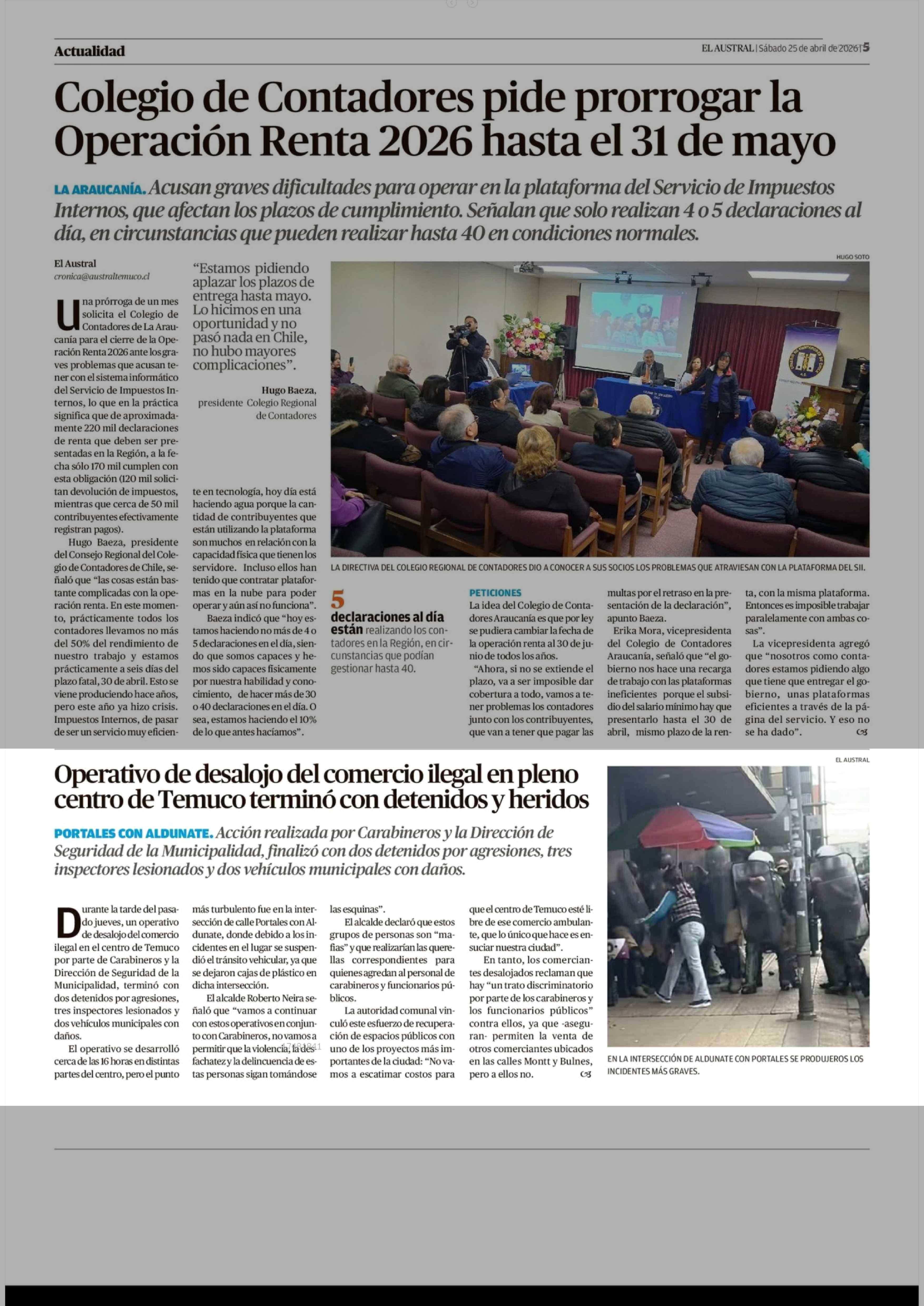 Operativo de desalojo del comercio ilegal en pleno centro de Temuco terminó con detenidos y heridos 25-04-2026 El Austral de la Araucanía |