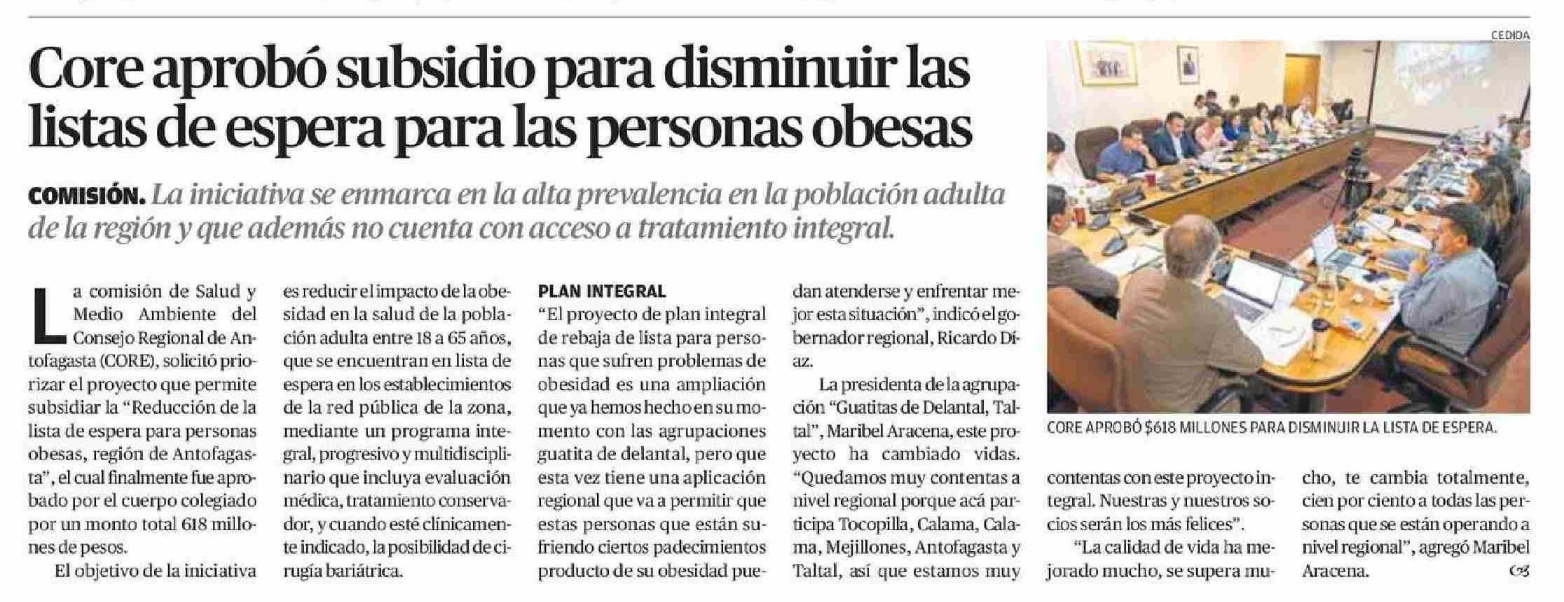 Título: Core aprobó subsidio para disminuir las listas de espera para las personas obesas