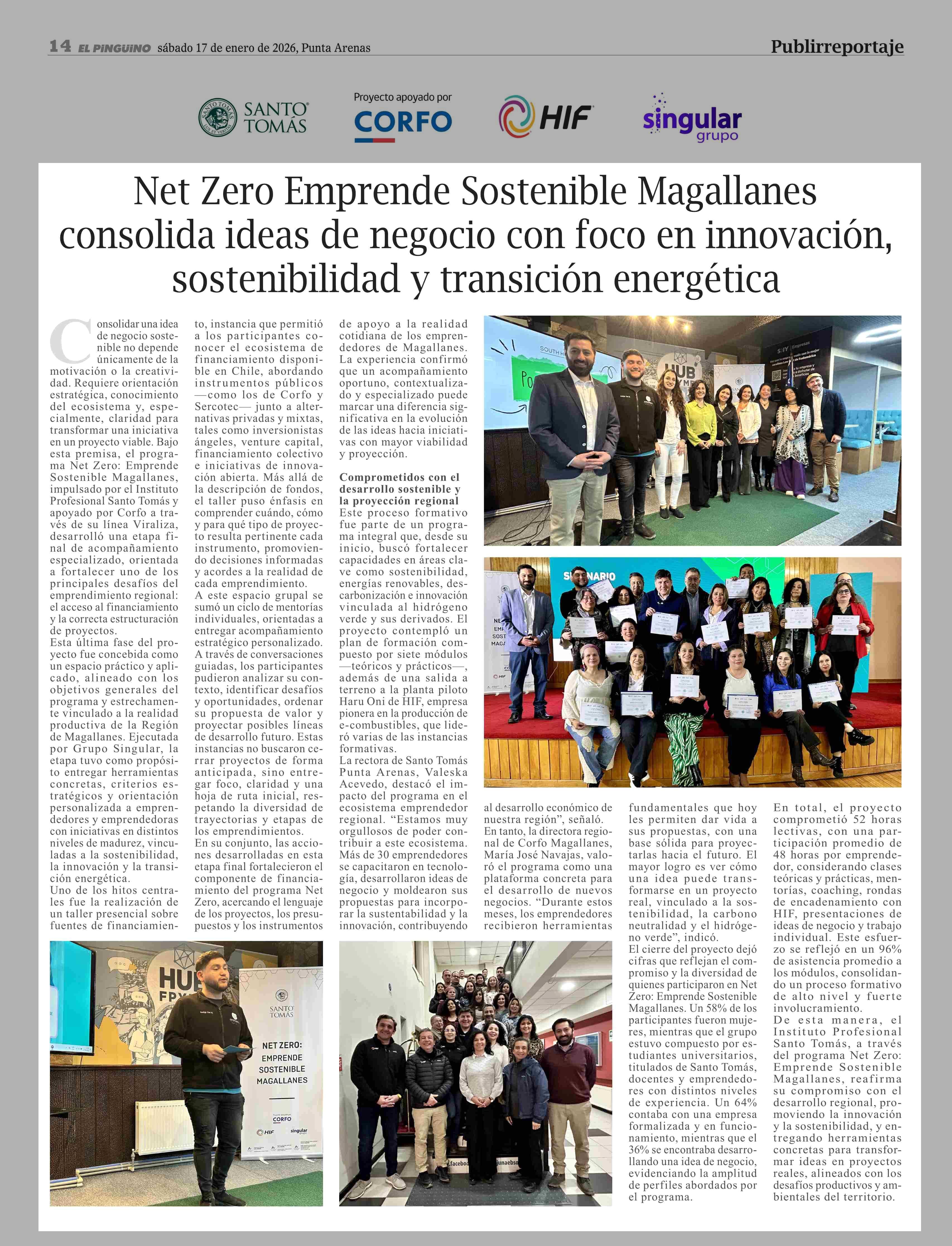 Net Zero Emprende Sostenible Magallanes consolida ideas de negocio con foco en innovación, sostenibilidad y transición energética 17-01-2026 El Pingüino |