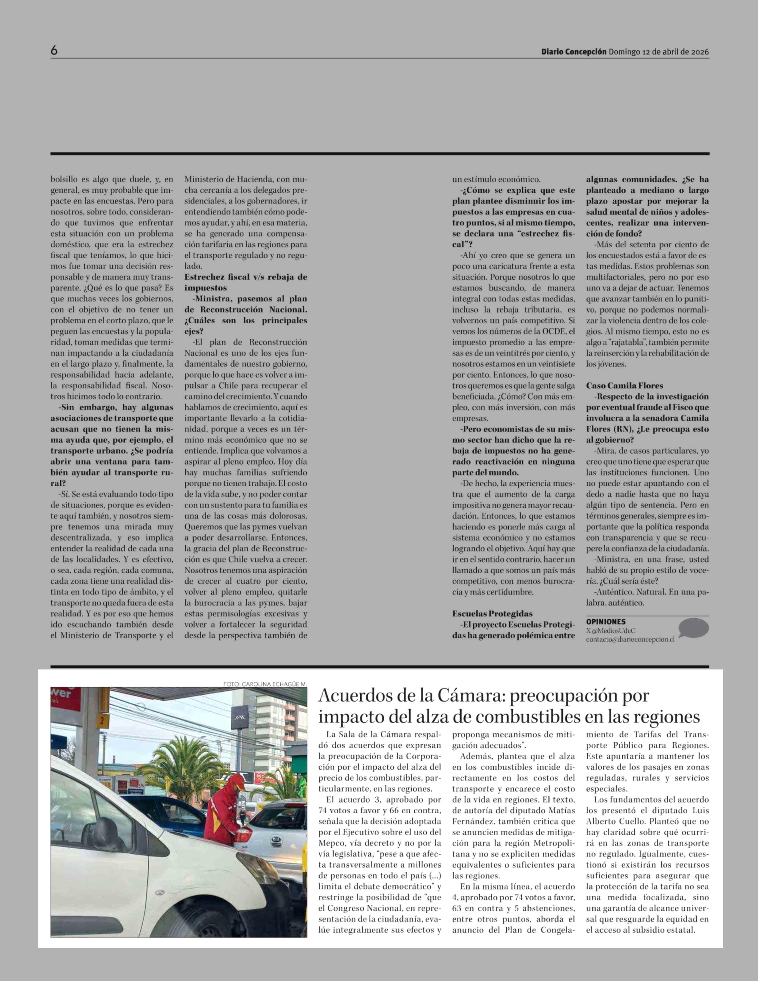 Acuerdos de la Cámara: preocupación por impacto del alza de combustibles en las regiones 12-04-2026 Diario Concepción |