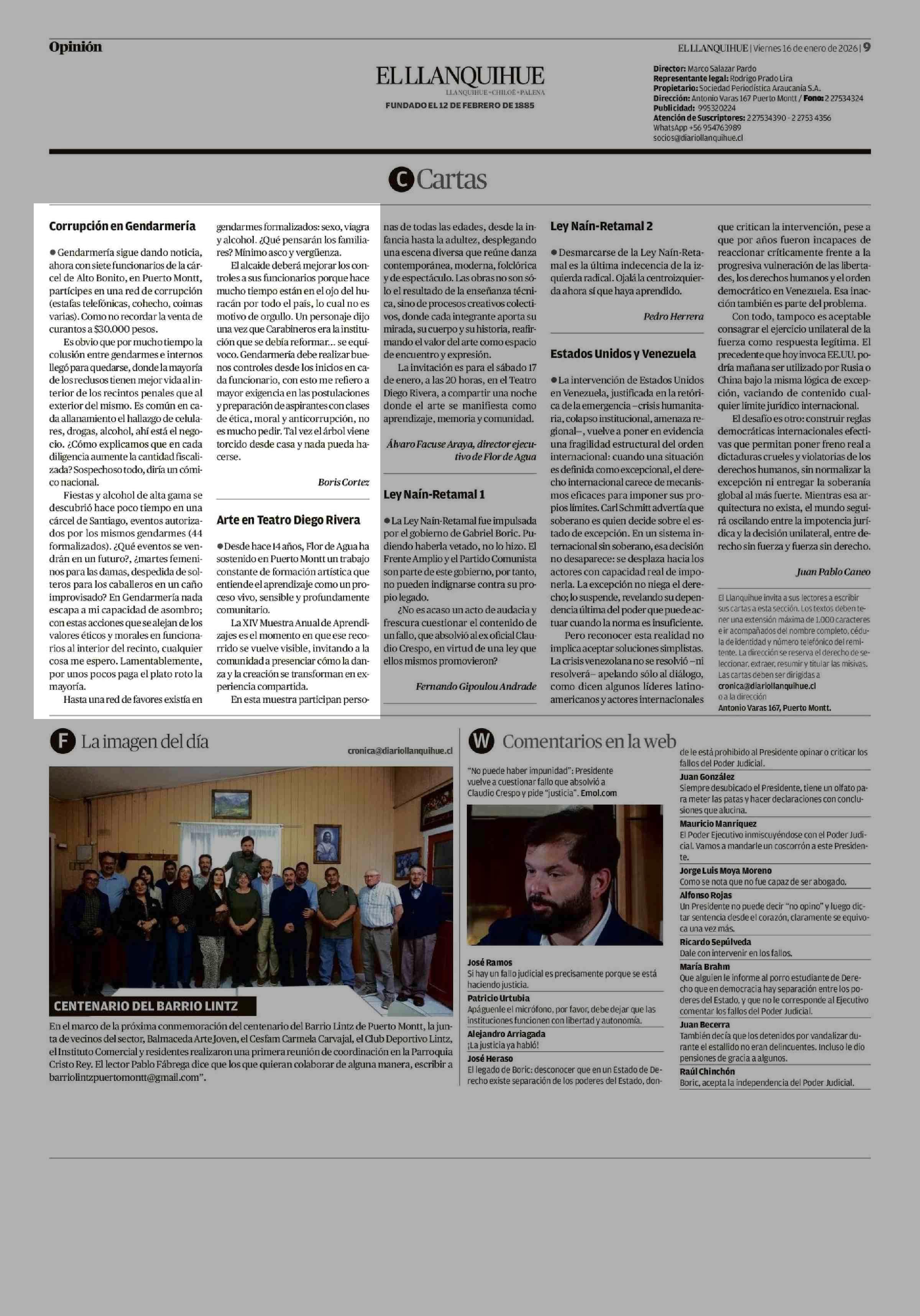 Cartas: Corrupción en Gendarmería 16-01-2026 El Llanquihue |