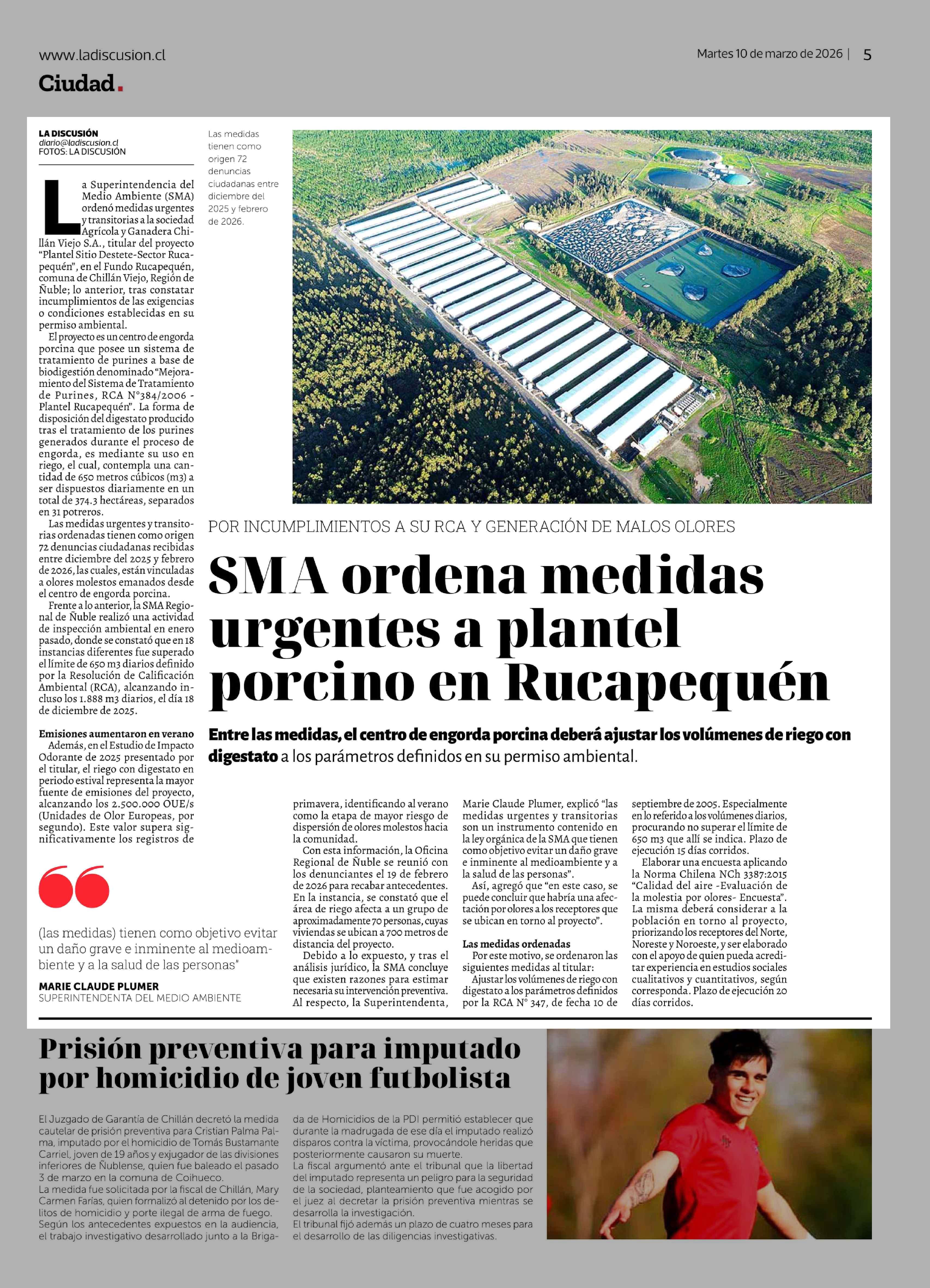 SMA ordena medidas urgentes a plantel porcino en Rucapequén 10-03-2026 La Discusión |