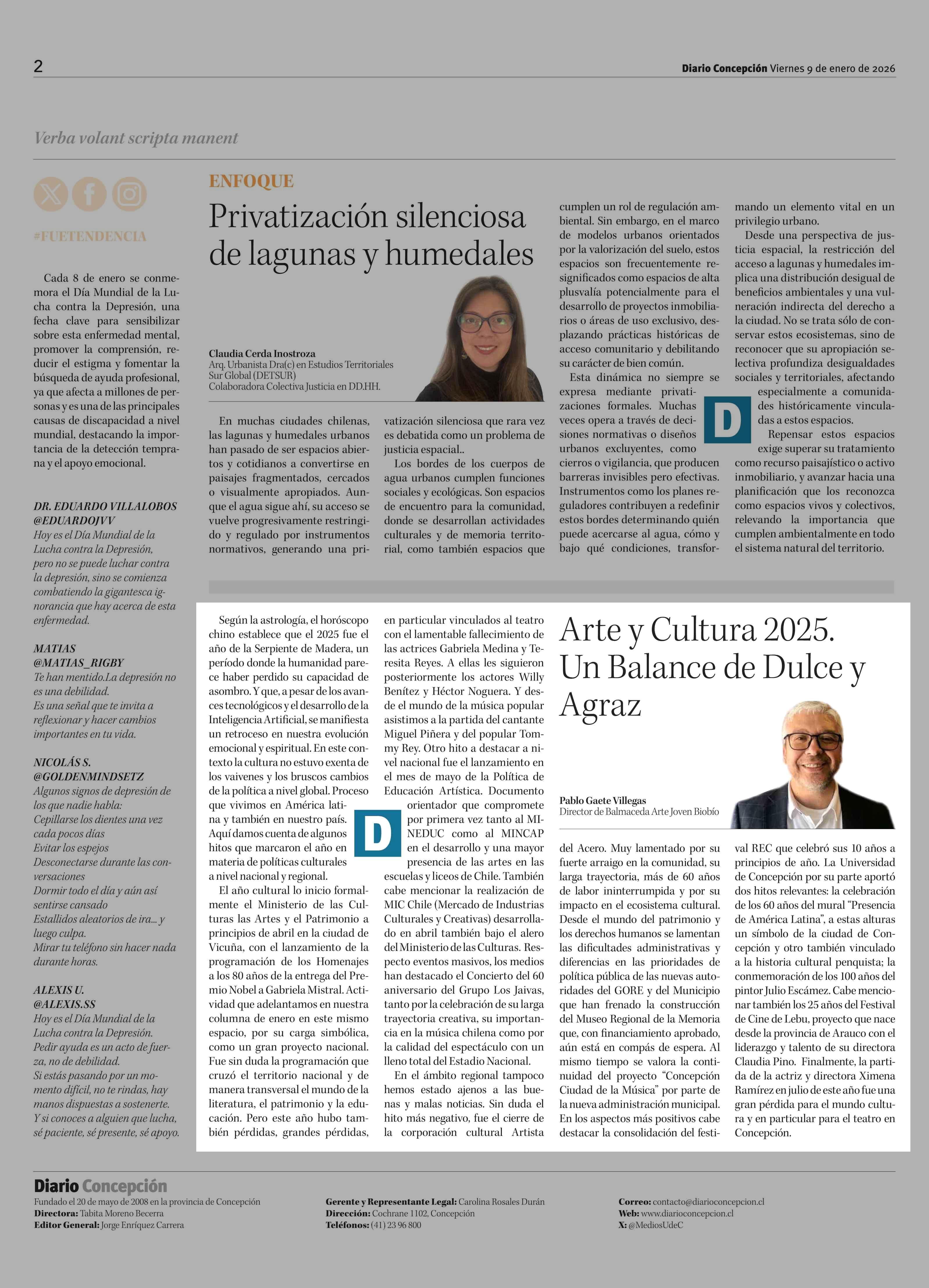 Columnas de Opinión: Arte y Cultura 2025. Un Balance de Dulce y Agraz 09-01-2026 Diario Concepción |