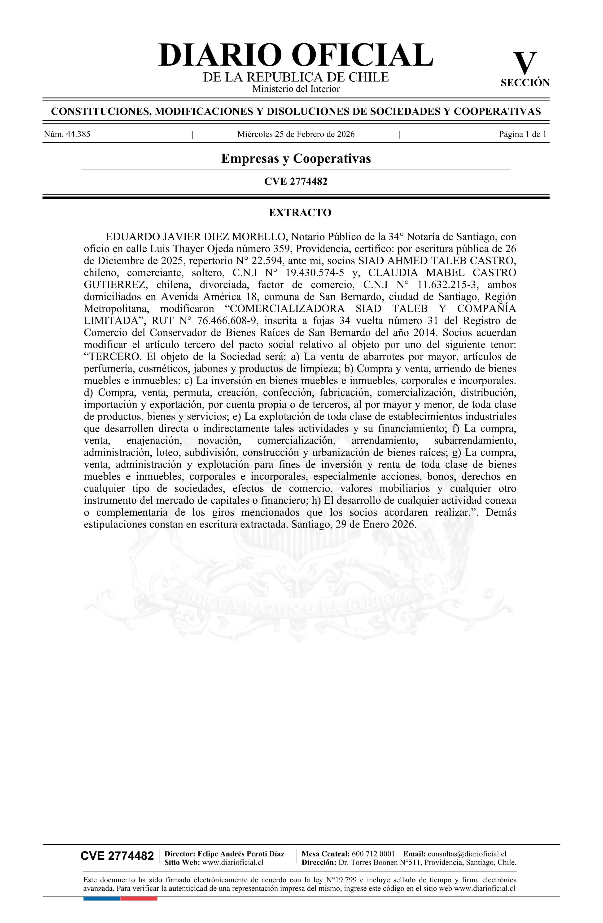 Título: COMERCIALIZADORA SIAD TALEB Y COMPAÑÍA LIMITADA 76.466.608-9