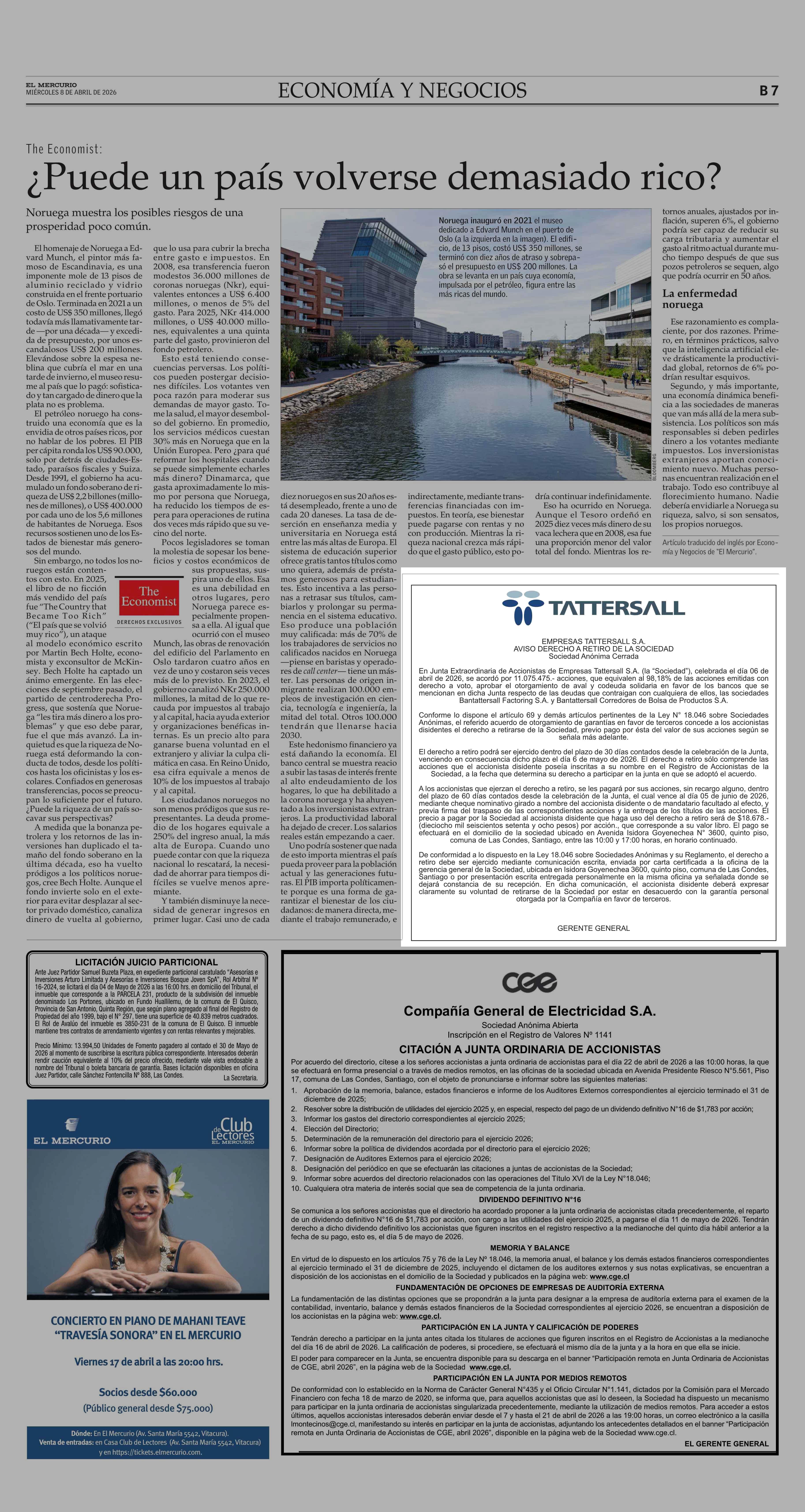 EXTRACTOS: EMPRESAS TATTERSALL S.A 08-04-2026 El Mercurio |