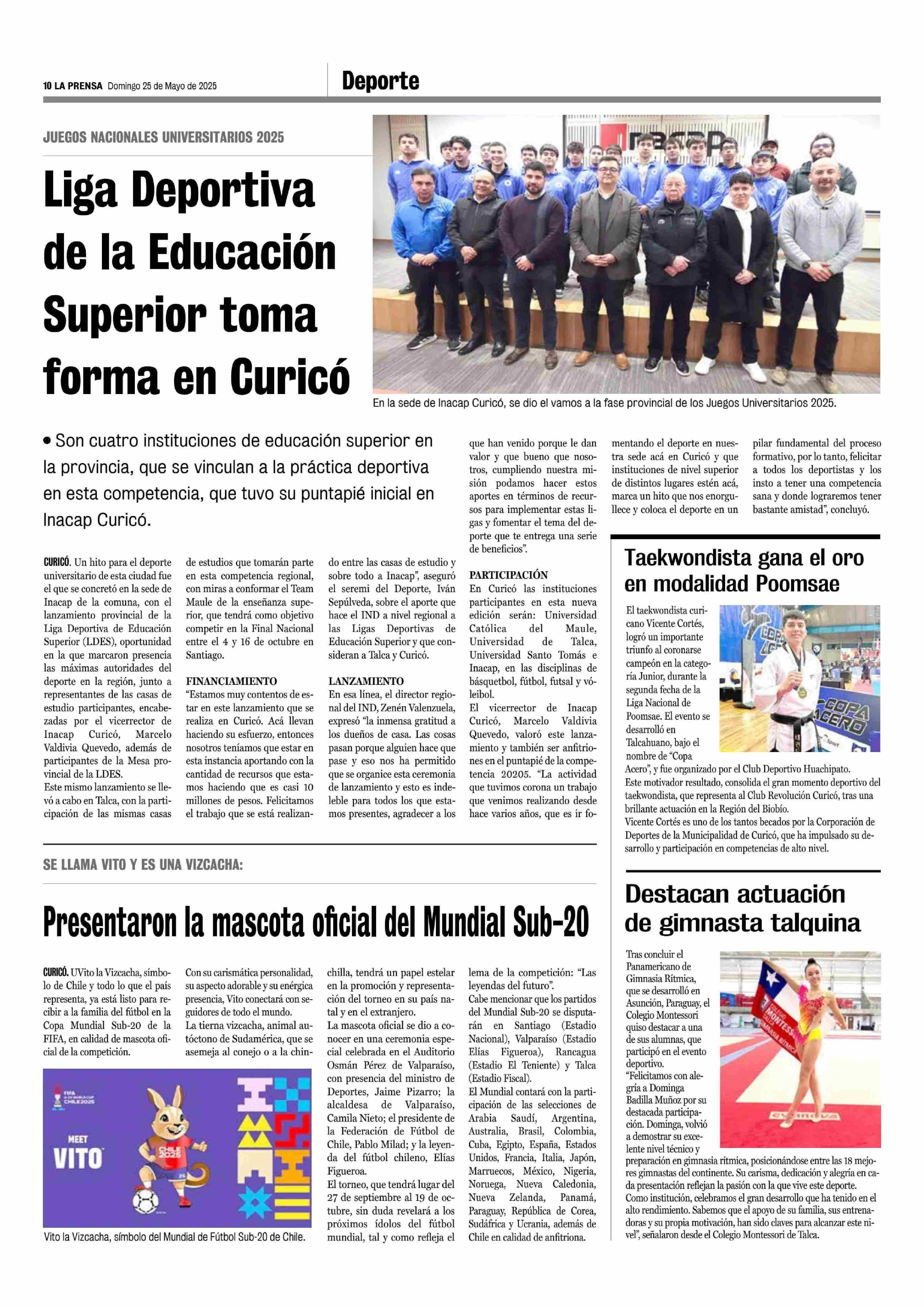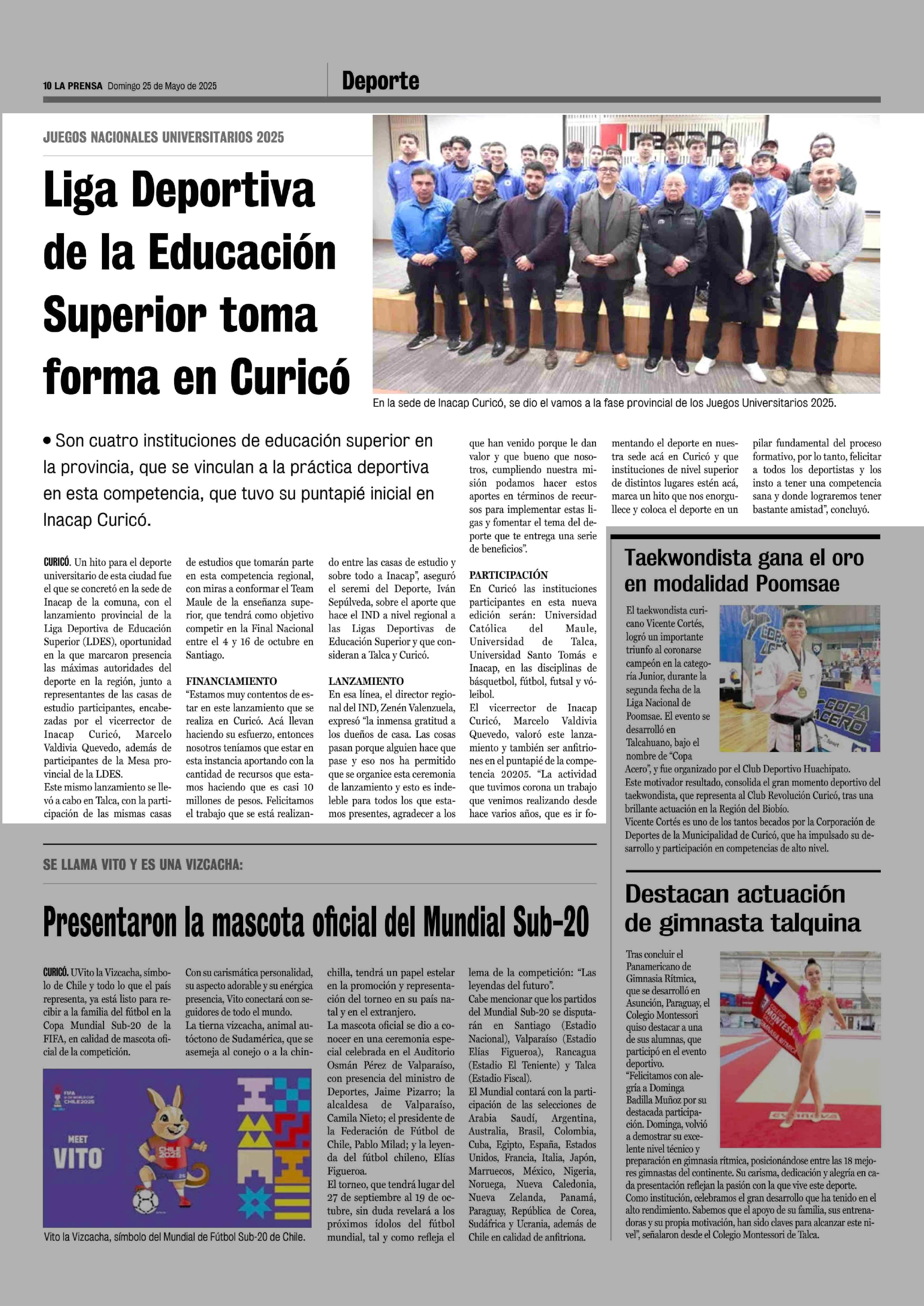 Liga Deportiva de la Educación Superior toma forma en Curicó 25-05-2025 La Prensa de Curicó |