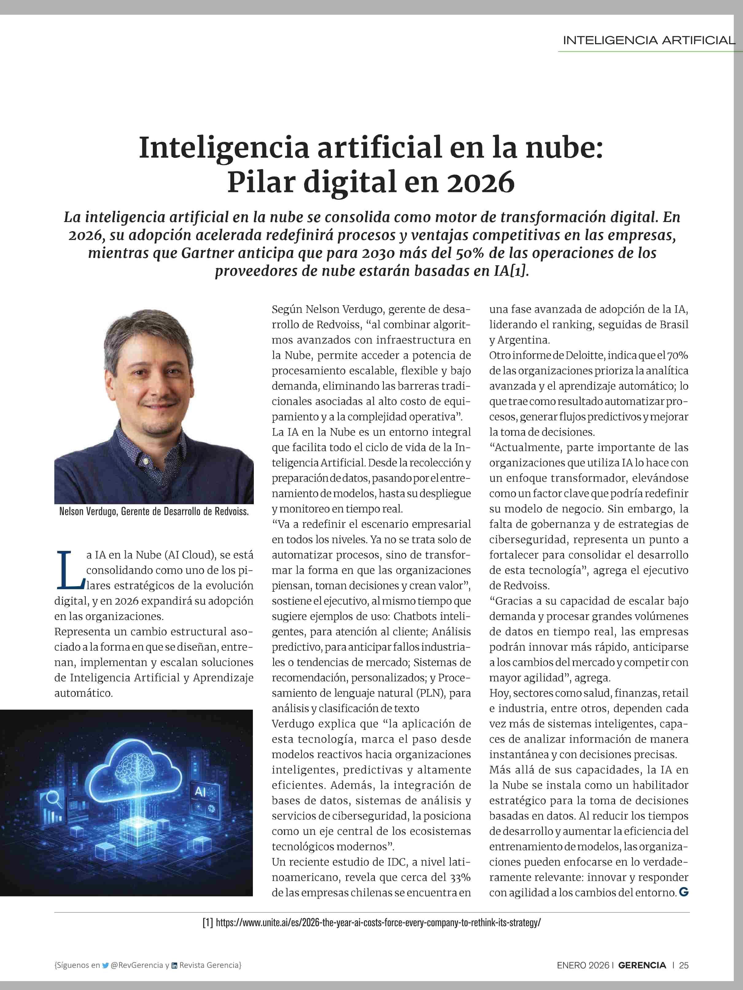 Inteligencia artificial en la nube: Pilar digital en 2026 29-01-2026 Revista Gerencia |