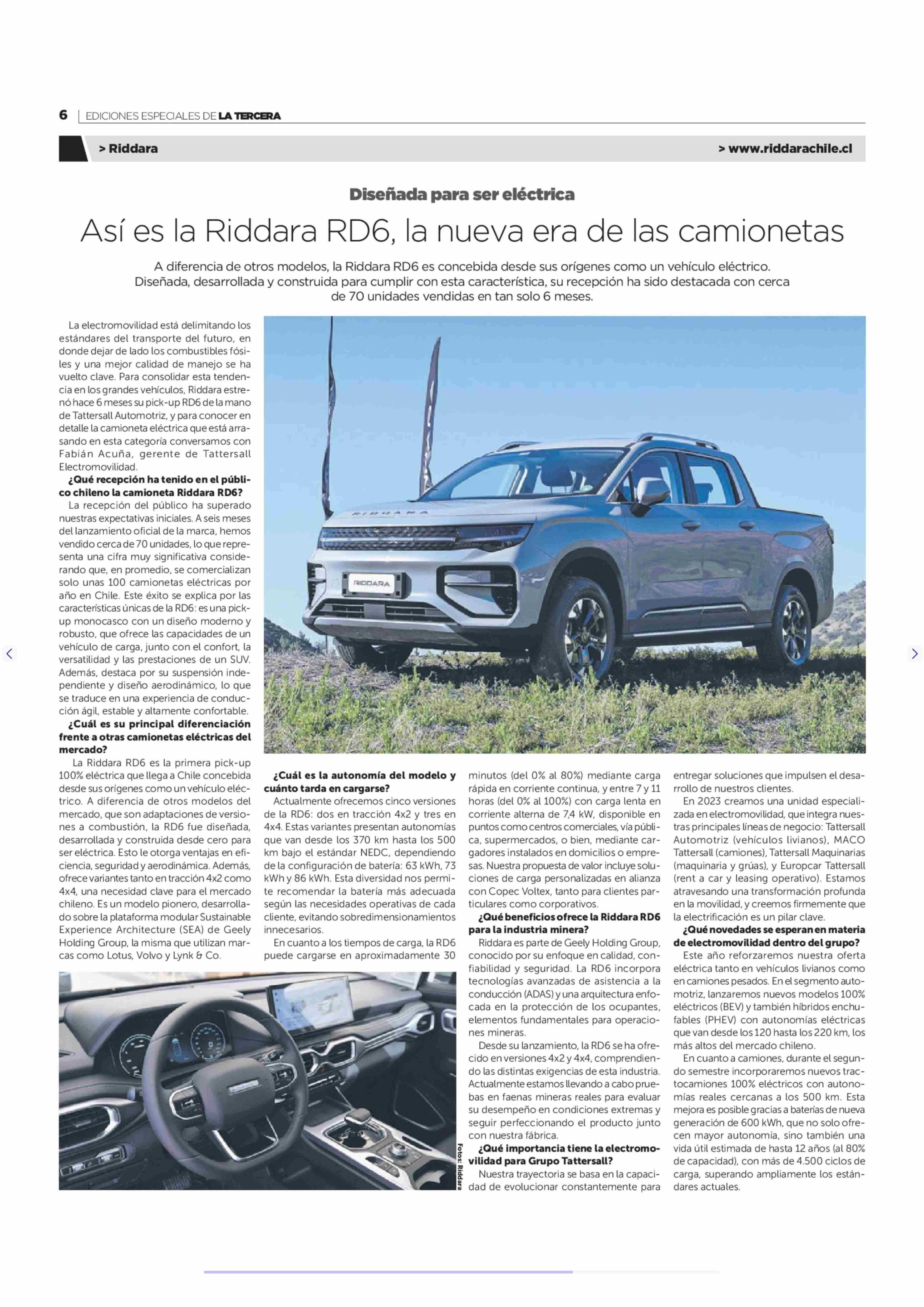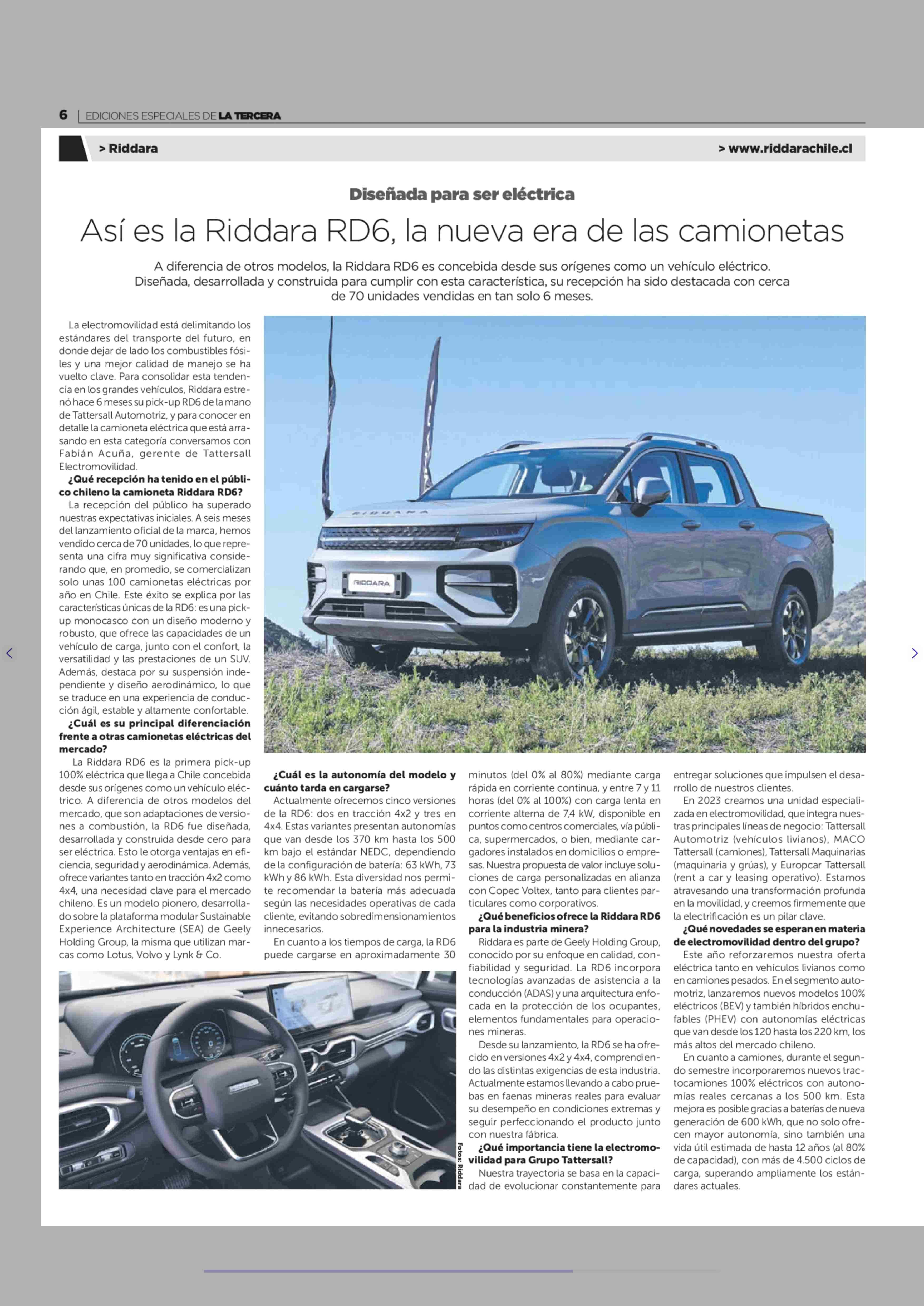 Así es la Riddara RD6, la nueva era de las camionetas 26-04-2025 La Tercera |
