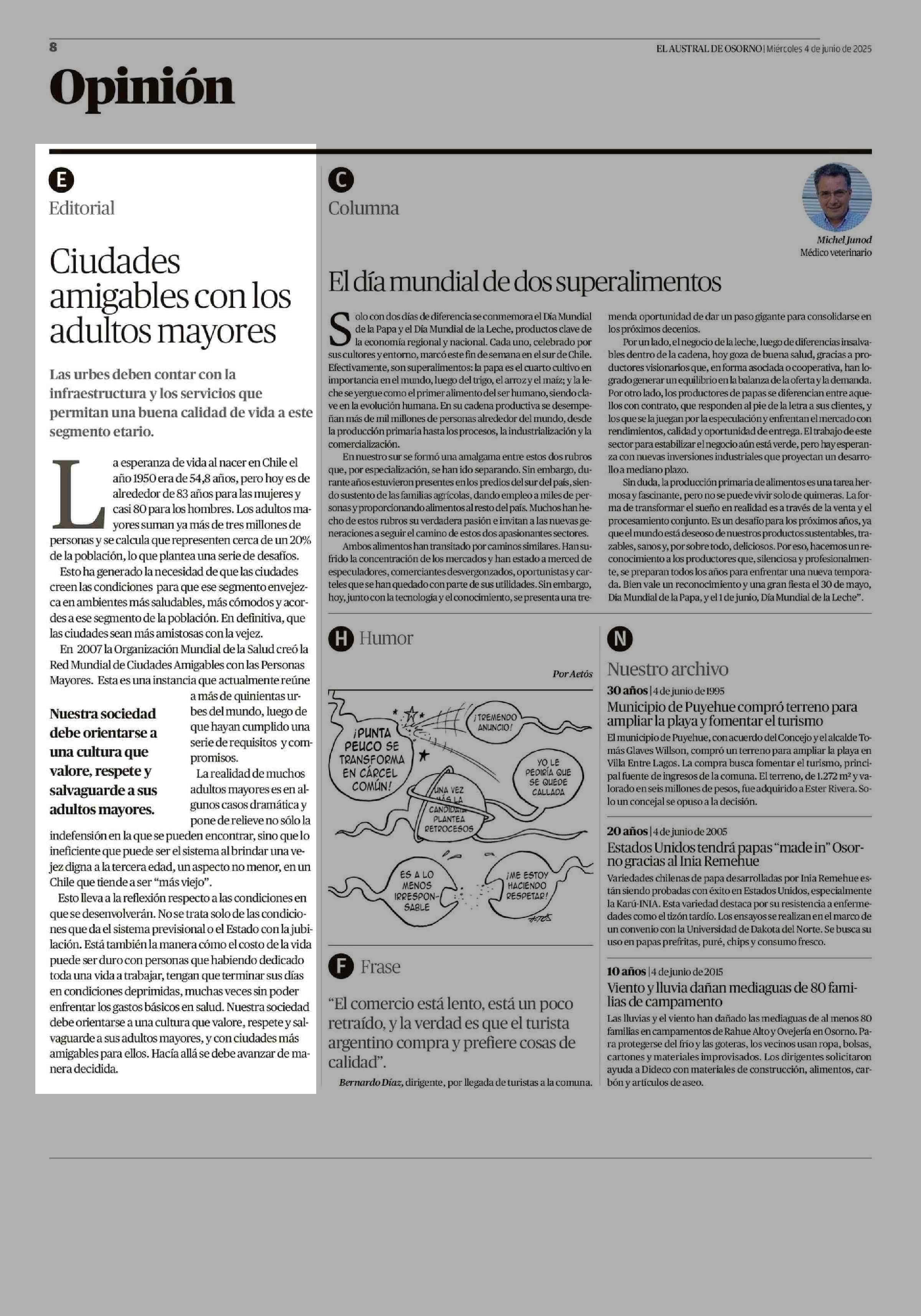 Editorial: Ciudades amigables con los adultos mayores 04-06-2025 El Austral de Osorno |