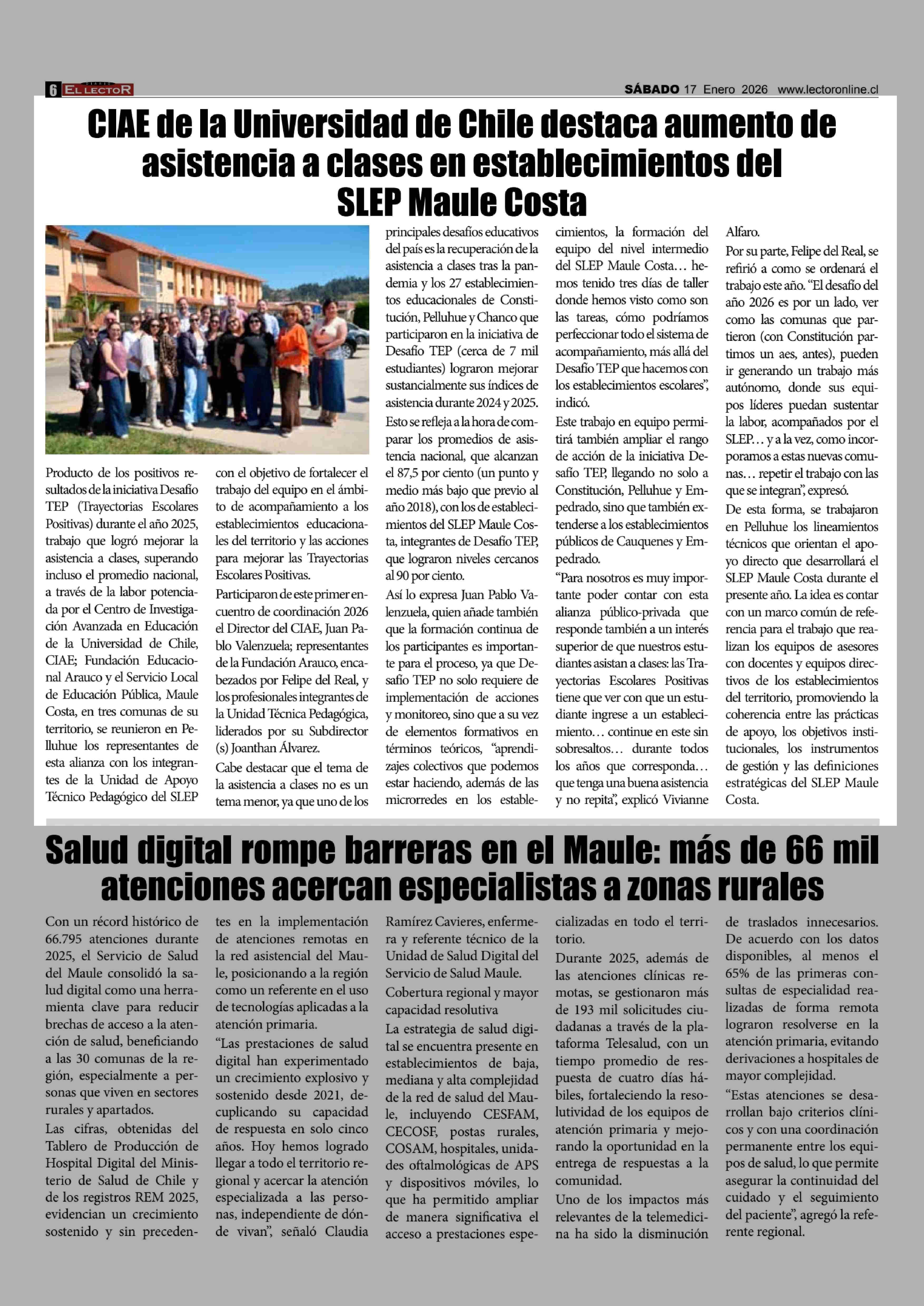 Título: CIAE de la Universidad de Chile destaca aumento de asistencia a clases en establecimientos del SLEP Maule Costa