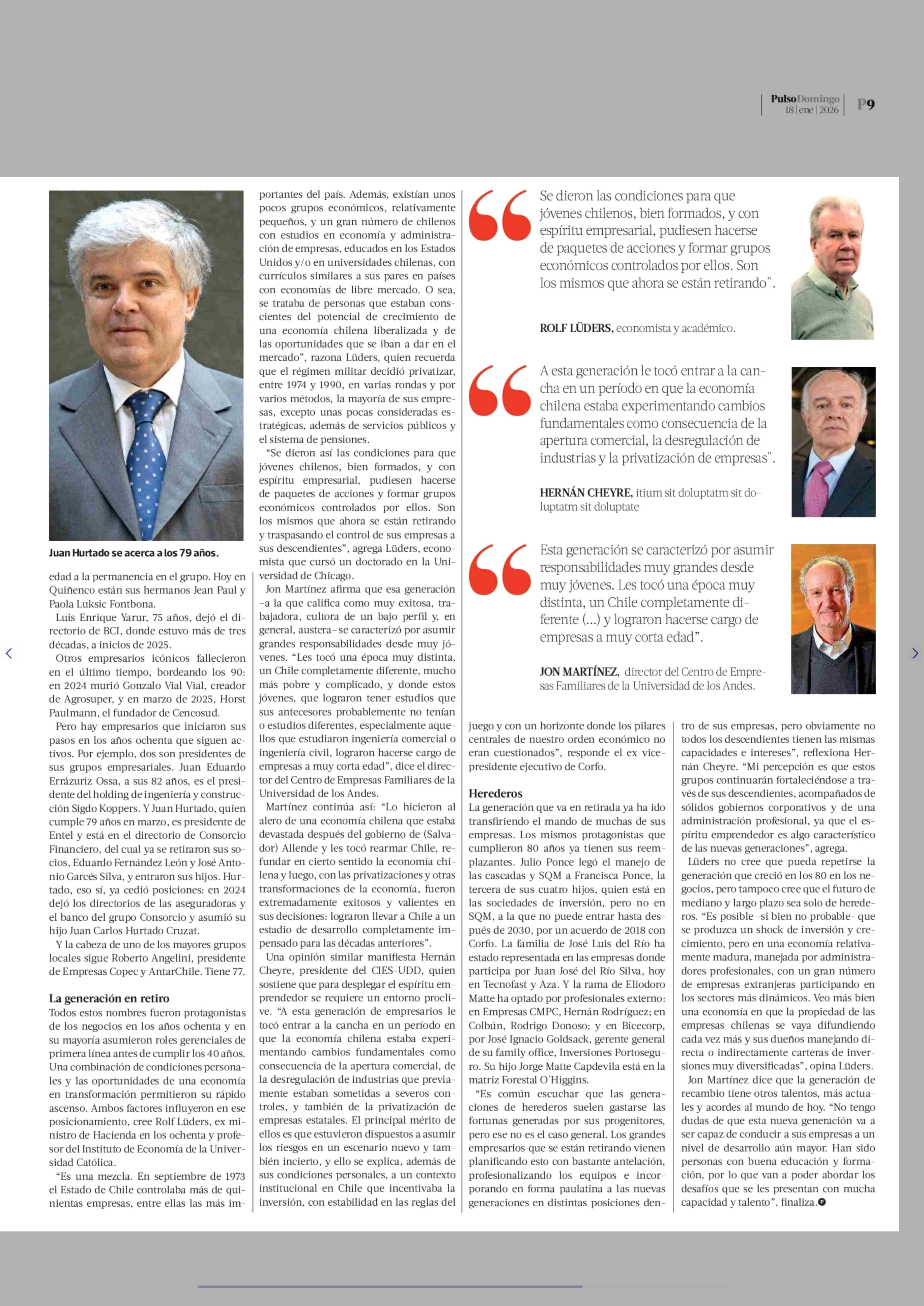 La generación empresarial chilena que se retiró (y se está retirando) de la primera línea 18-01-2026 La Tercera |