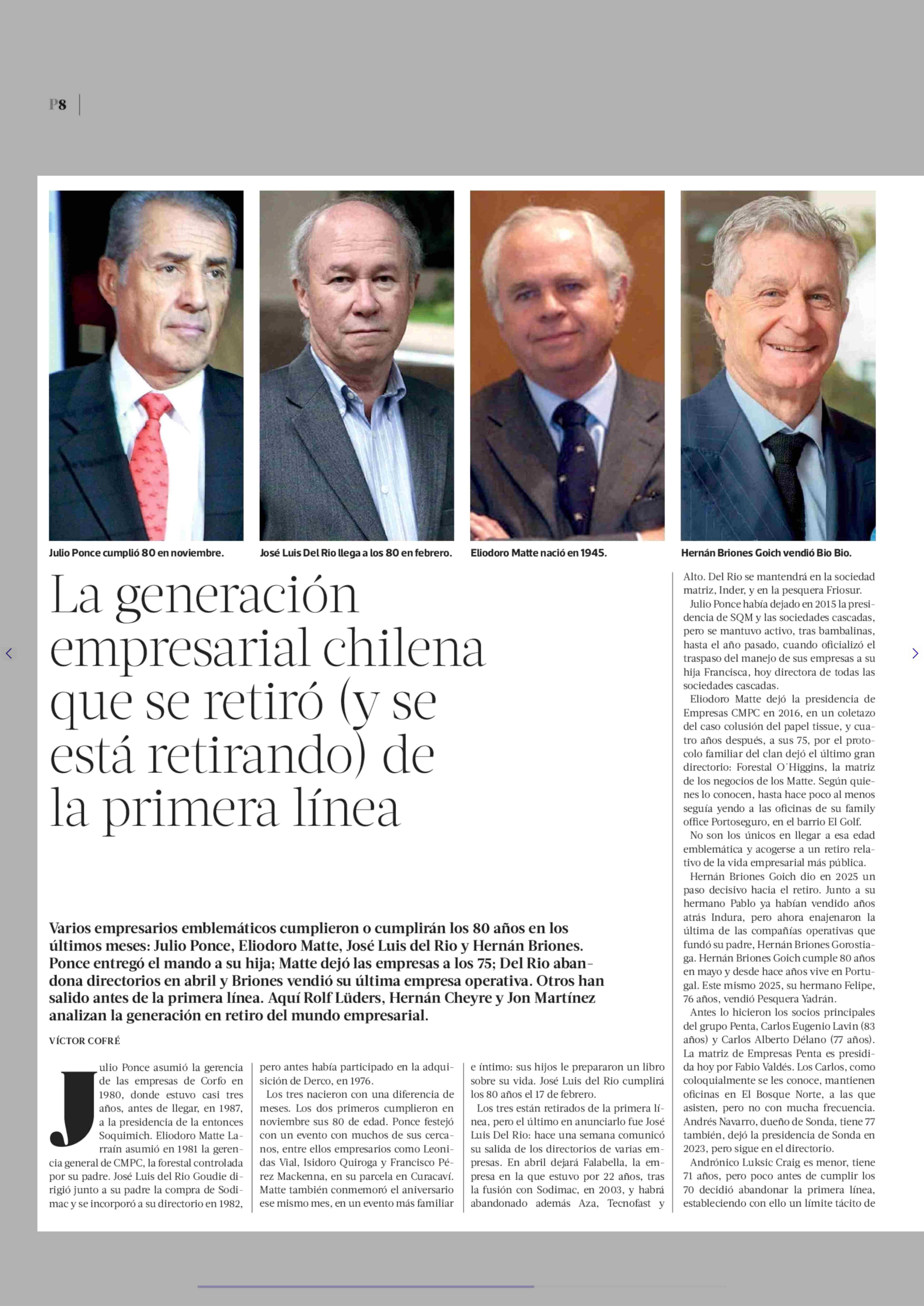 | Título: | La generación empresarial chilena que se retiró (y se está retirando) de la primera línea |
