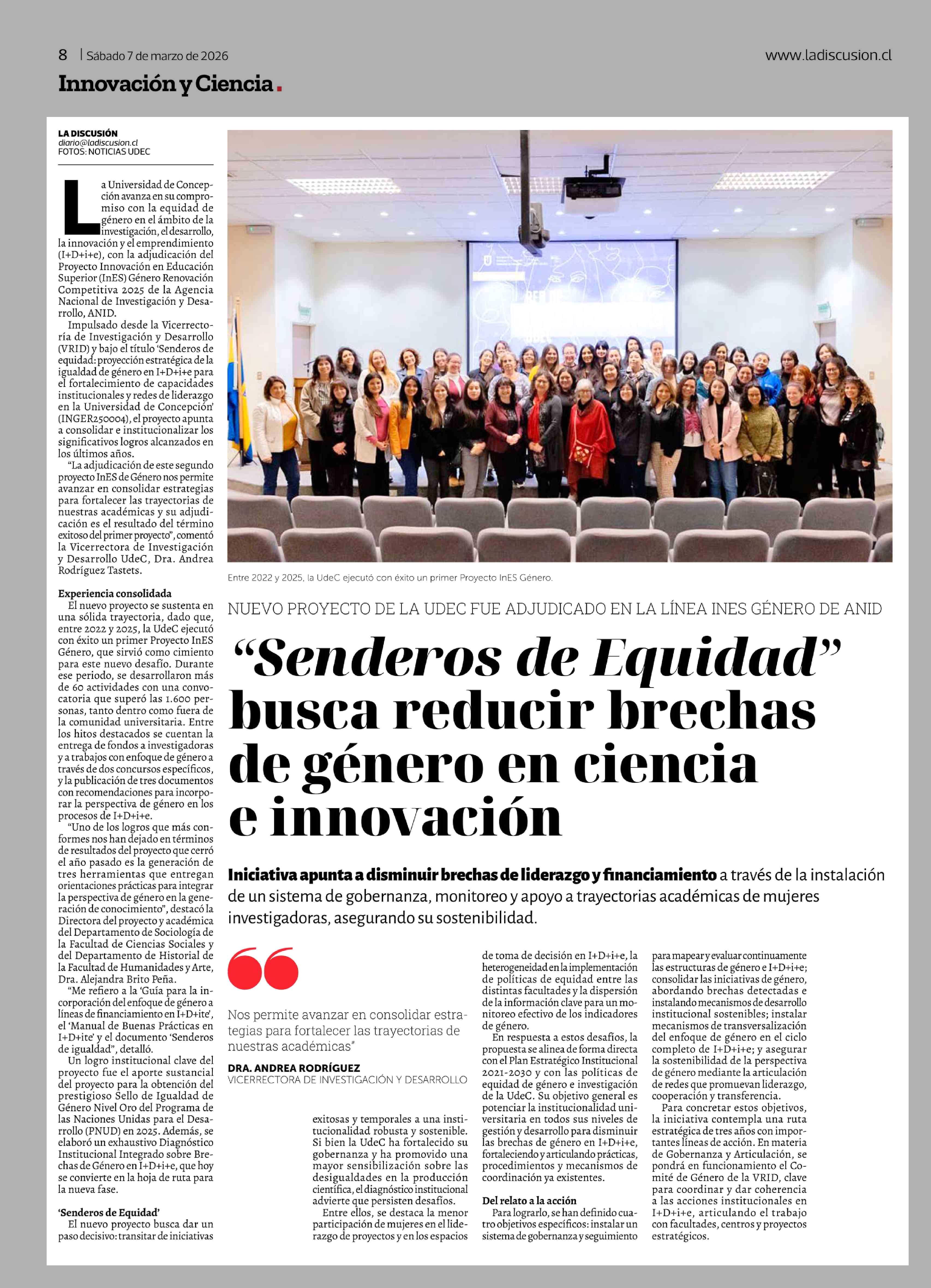"Senderos de Equidad" busca reducir brechas de género en ciencia e innovación 07-03-2026 La Discusión |