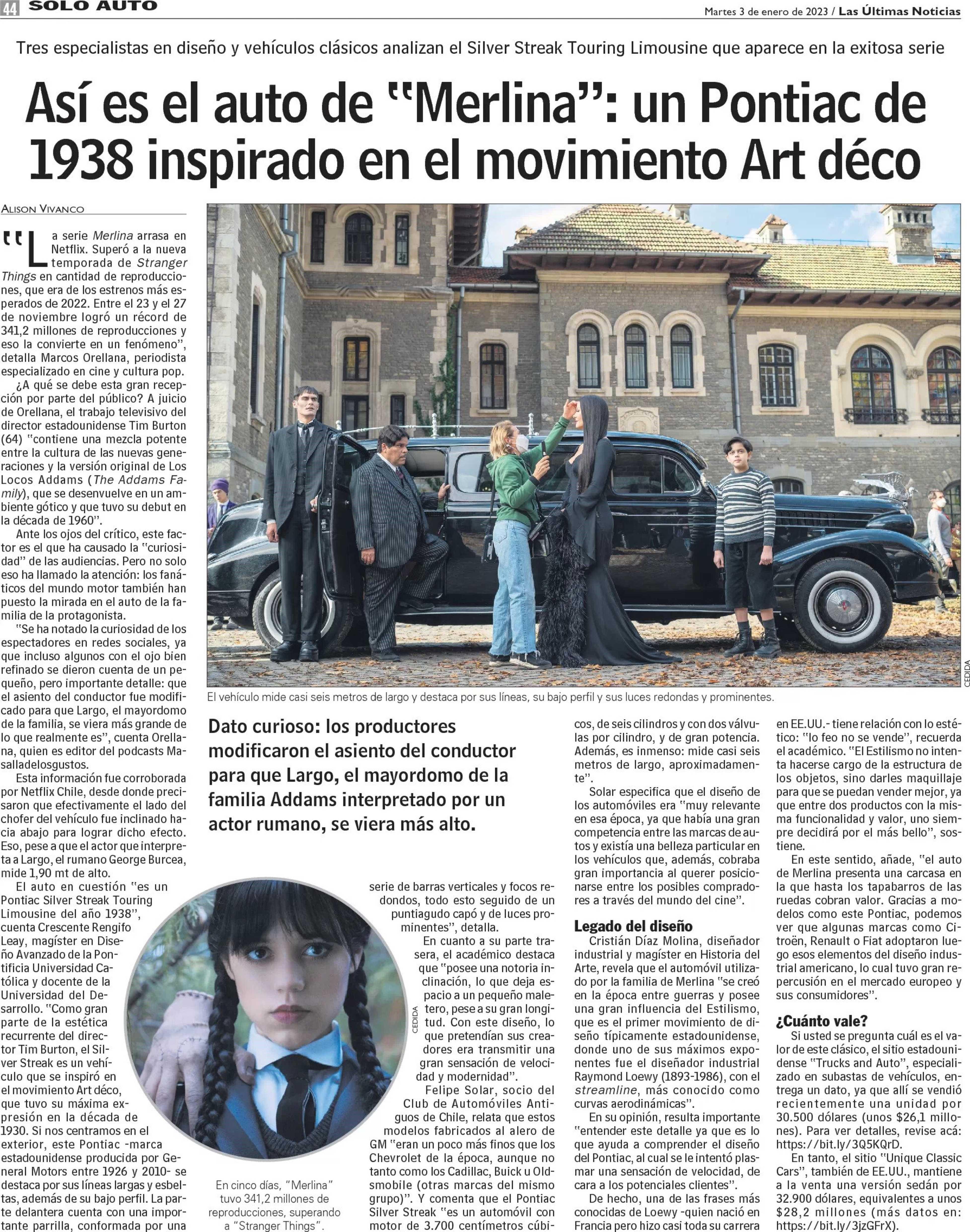 Así es el auto de ““Merlina”: un Pontiac de 1938 inspirado en el movimiento Art déco 03-01-2023 Las Últimas Noticias |