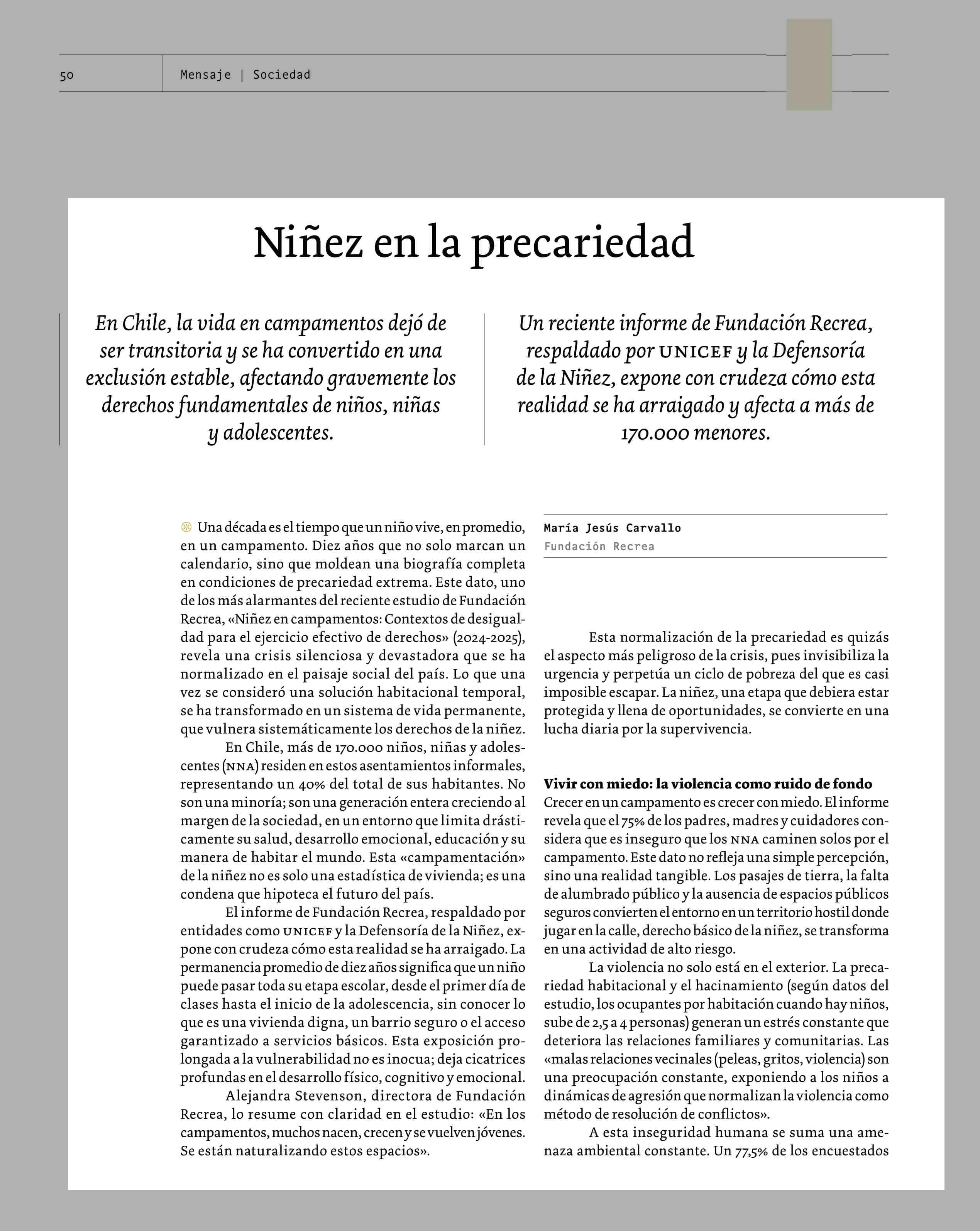 Niñez en la precariedad 12-02-2026 Revista Mensaje |