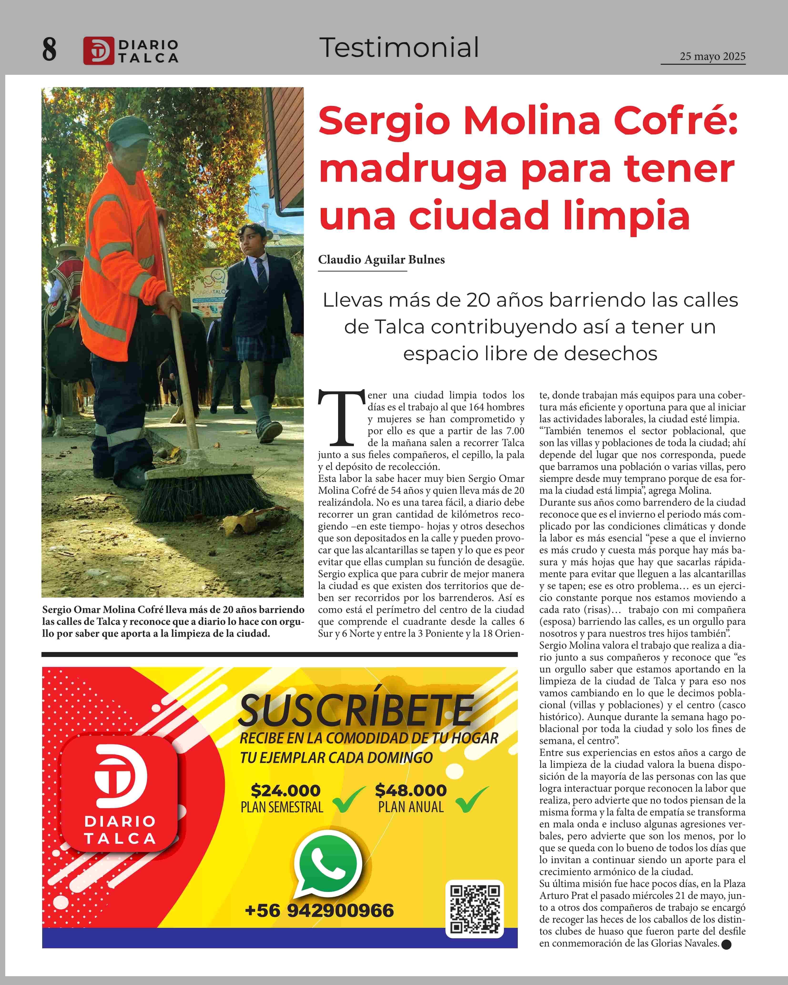 Sergio Molina Cofré: madruga para tener una ciudad limpia 26-05-2025 Diario Talca |