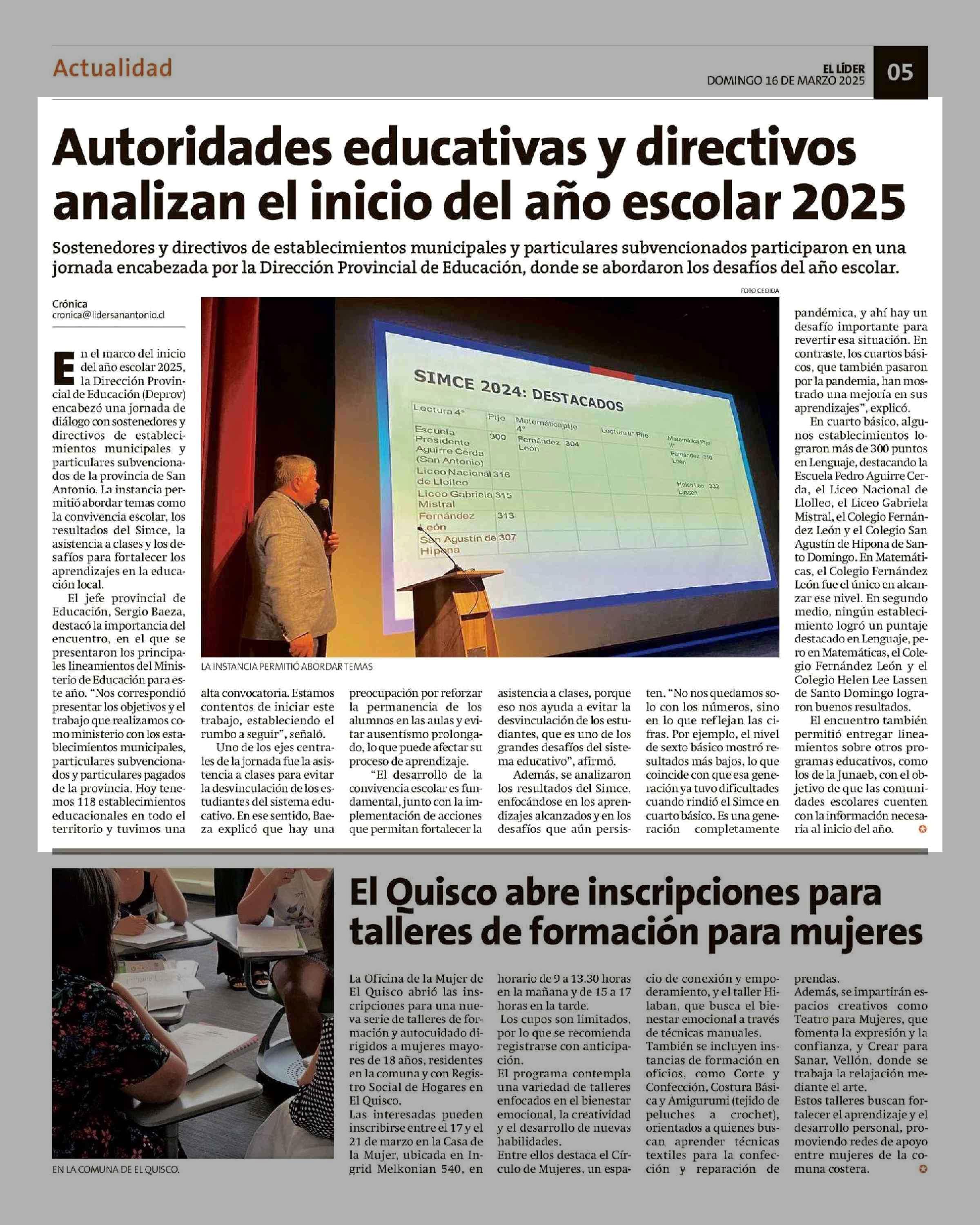 Autoridades educativas y directivos analizan el inicio del año escolar 2025 16-03-2025 El Líder |