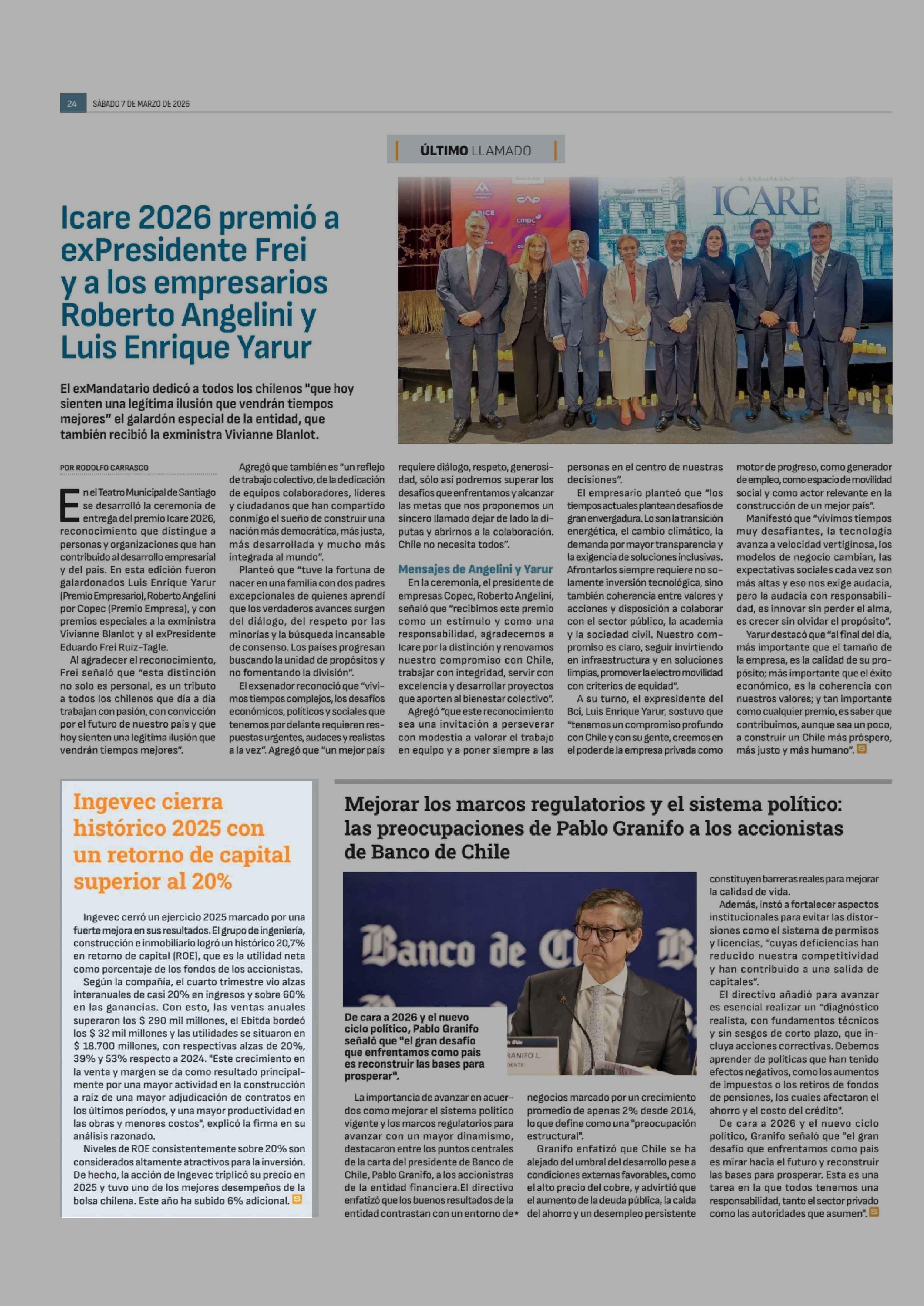 Ingevec cierra histórico 2025 con un retorno de capital superior al 20% 07-03-2026 Diario Financiero |