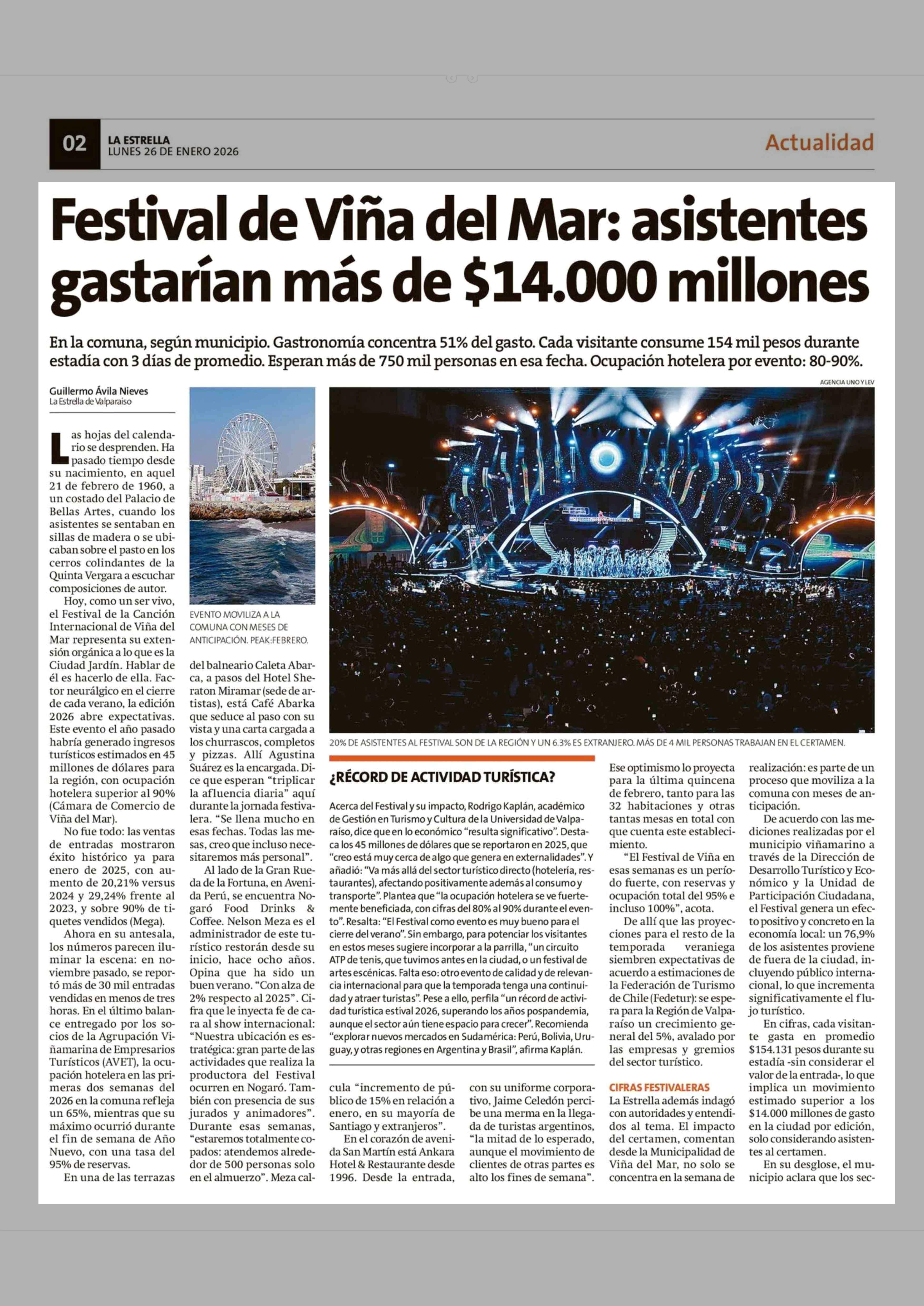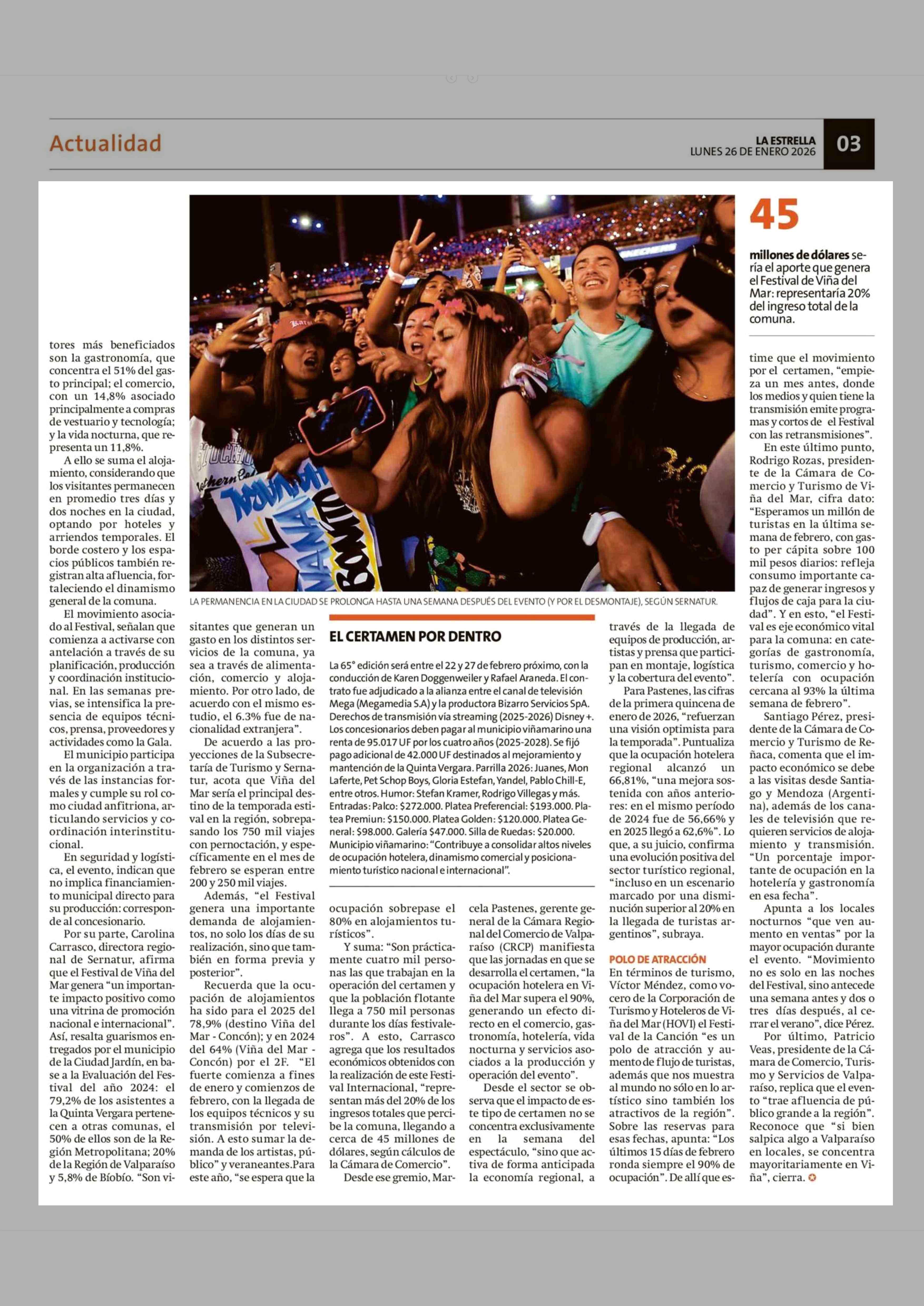 Festival de Viña del Mar: asistentes gastarían más de $14.000 millones 26-01-2026 La Estrella de Valparaíso |