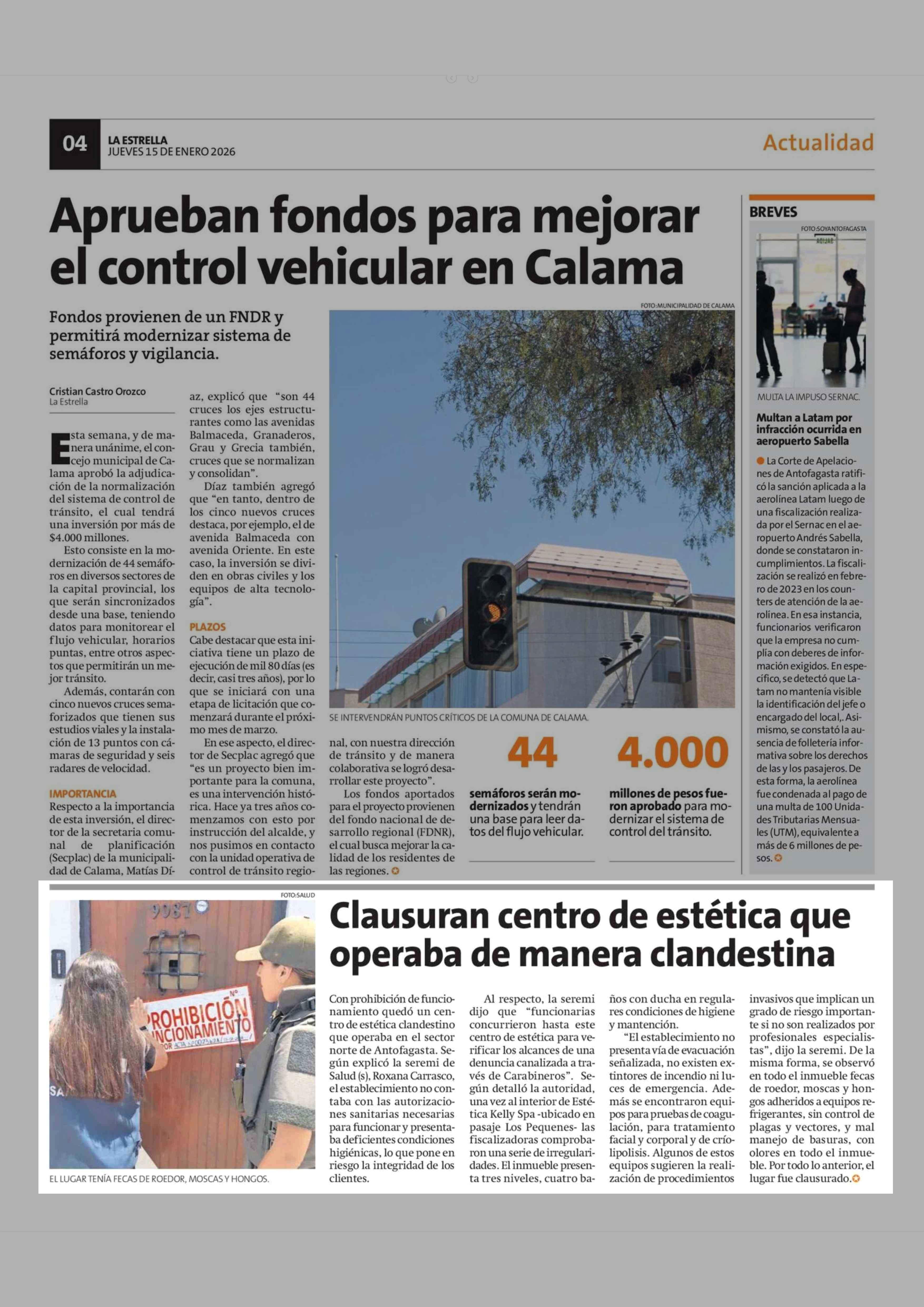 Clausuran centro de estética que operaba de manera clandestina 15-01-2026 La Estrella de Antofagasta |