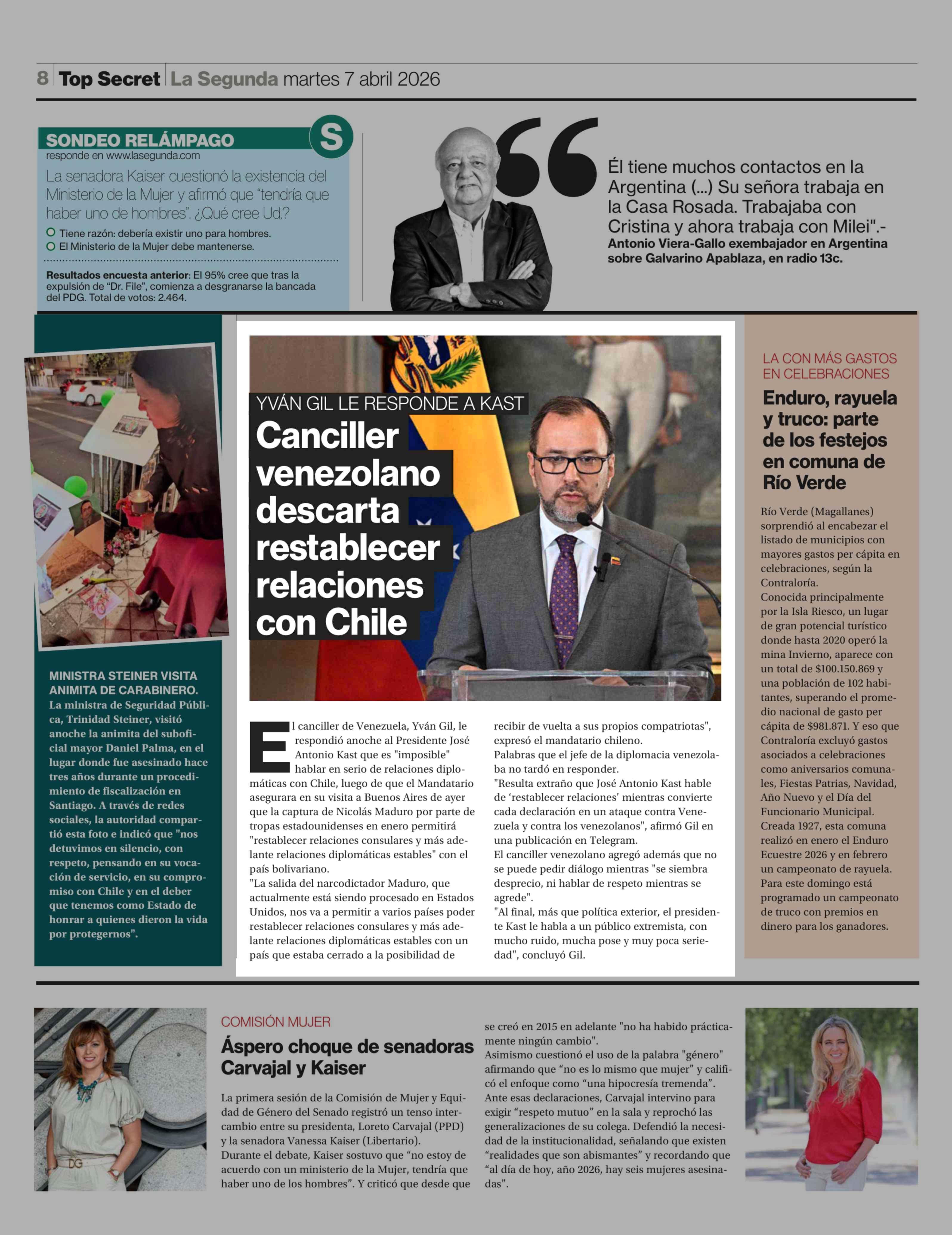 Canciller venezolano descarta restablecer relaciones con Chile 07-04-2026 La Segunda |