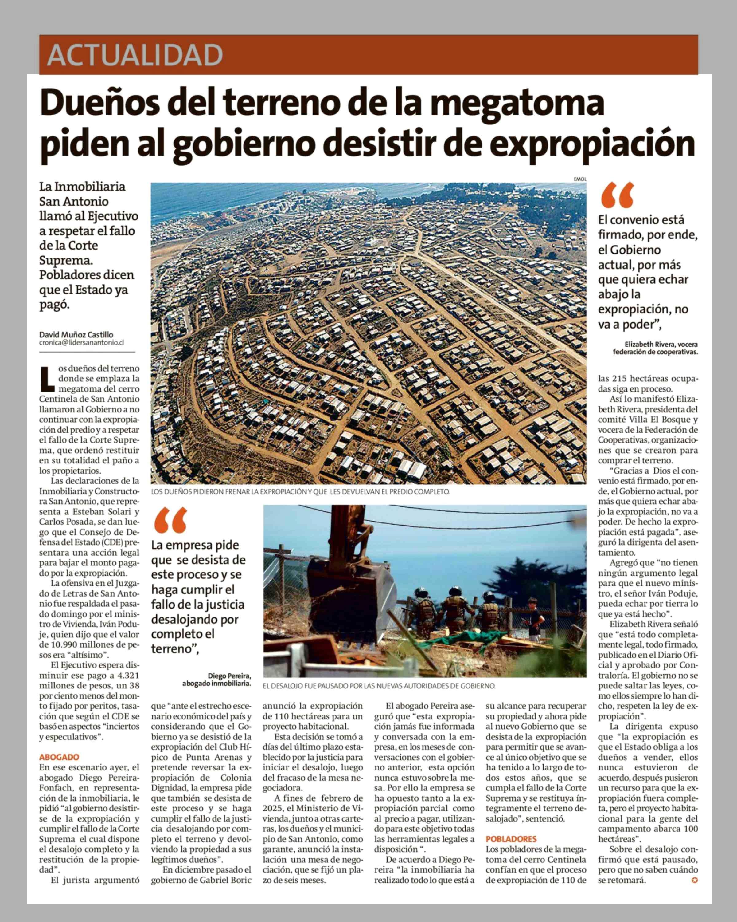 Título: Dueños del terreno de la megatoma piden al gobierno desistir de expropiación